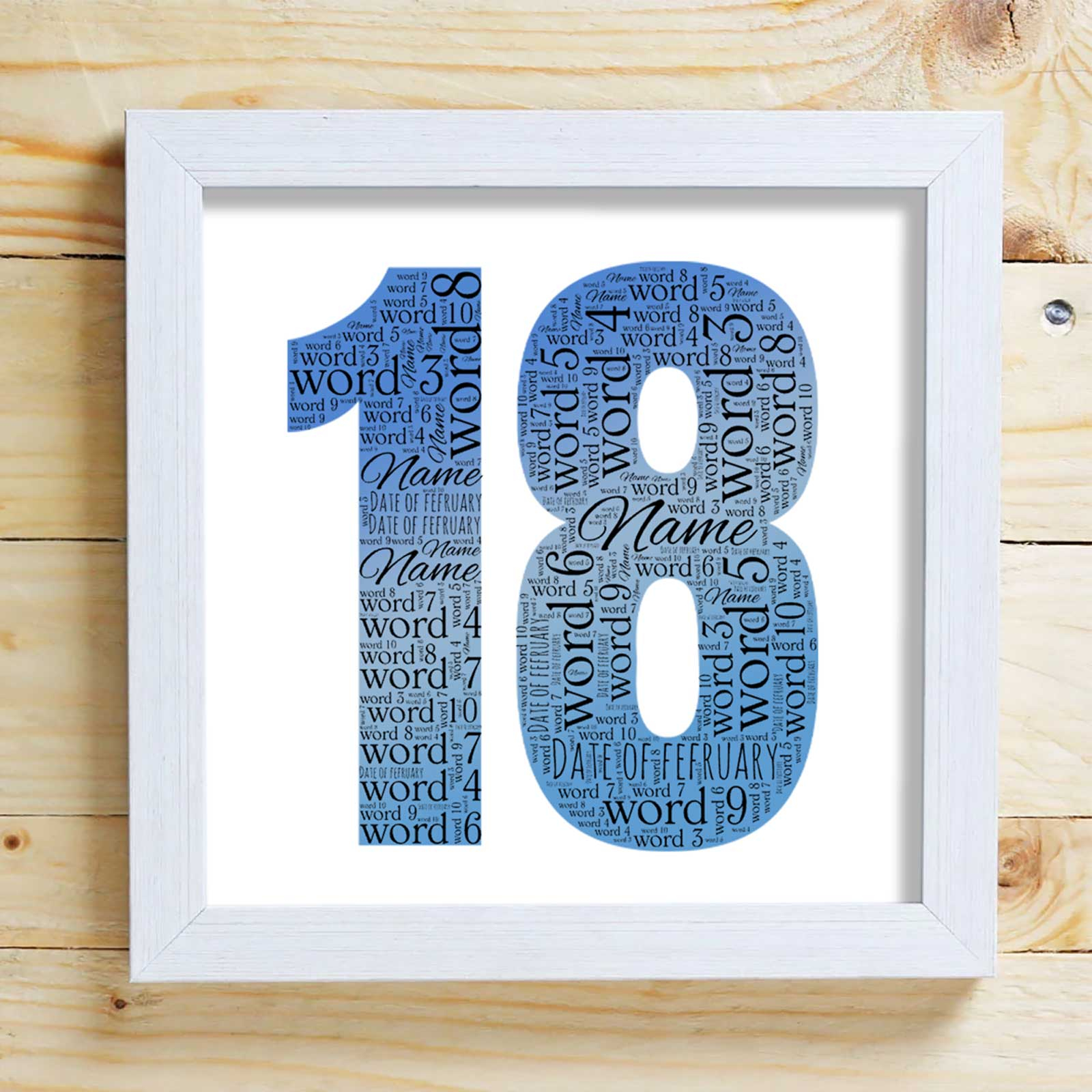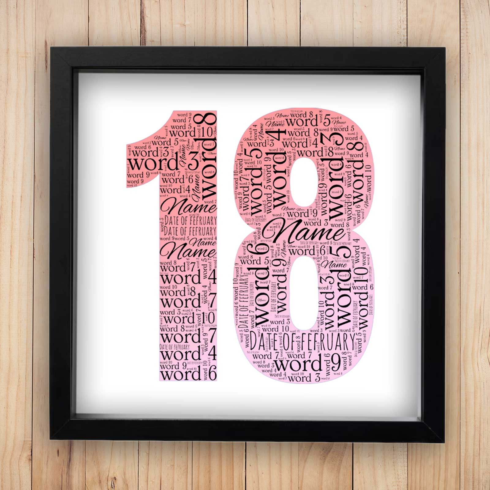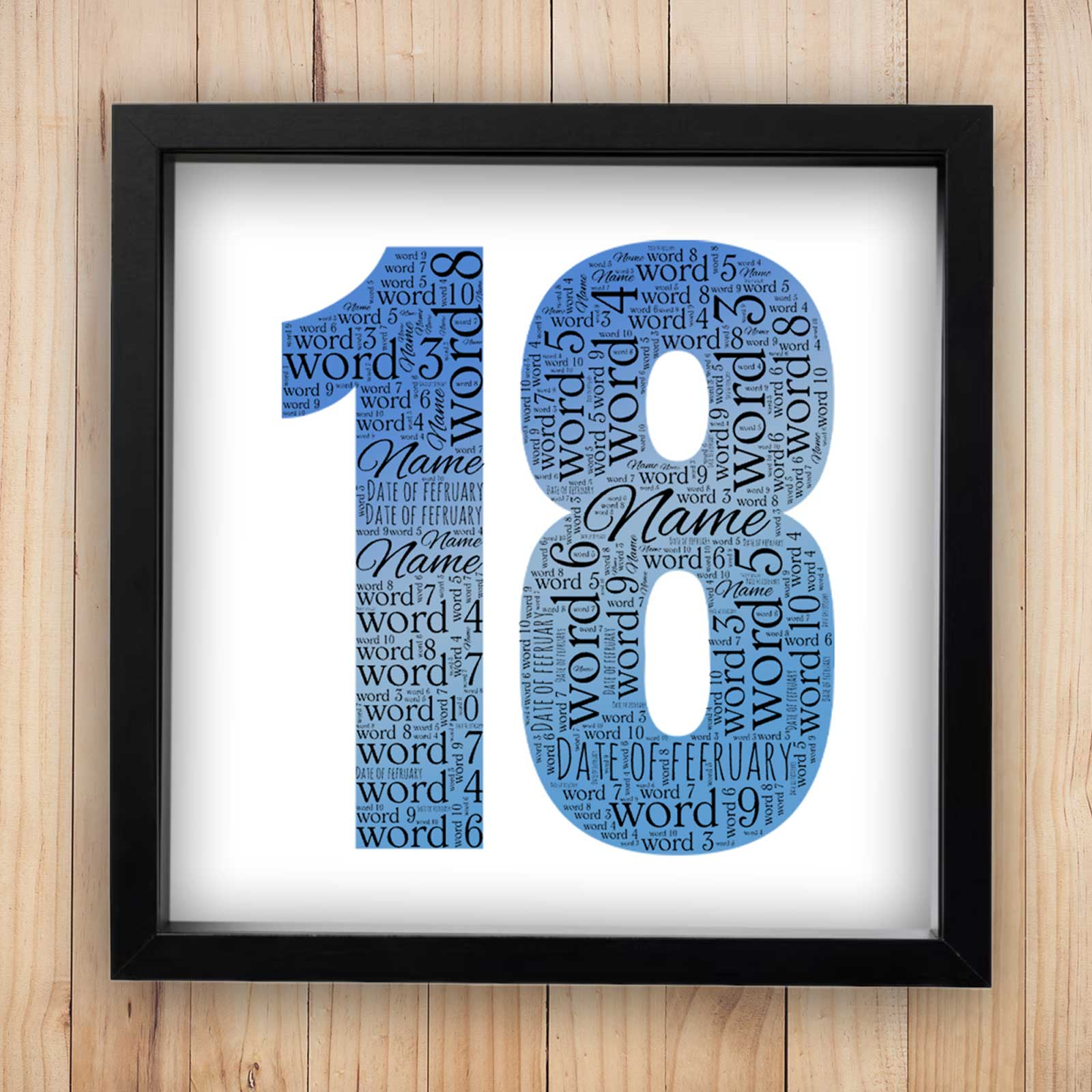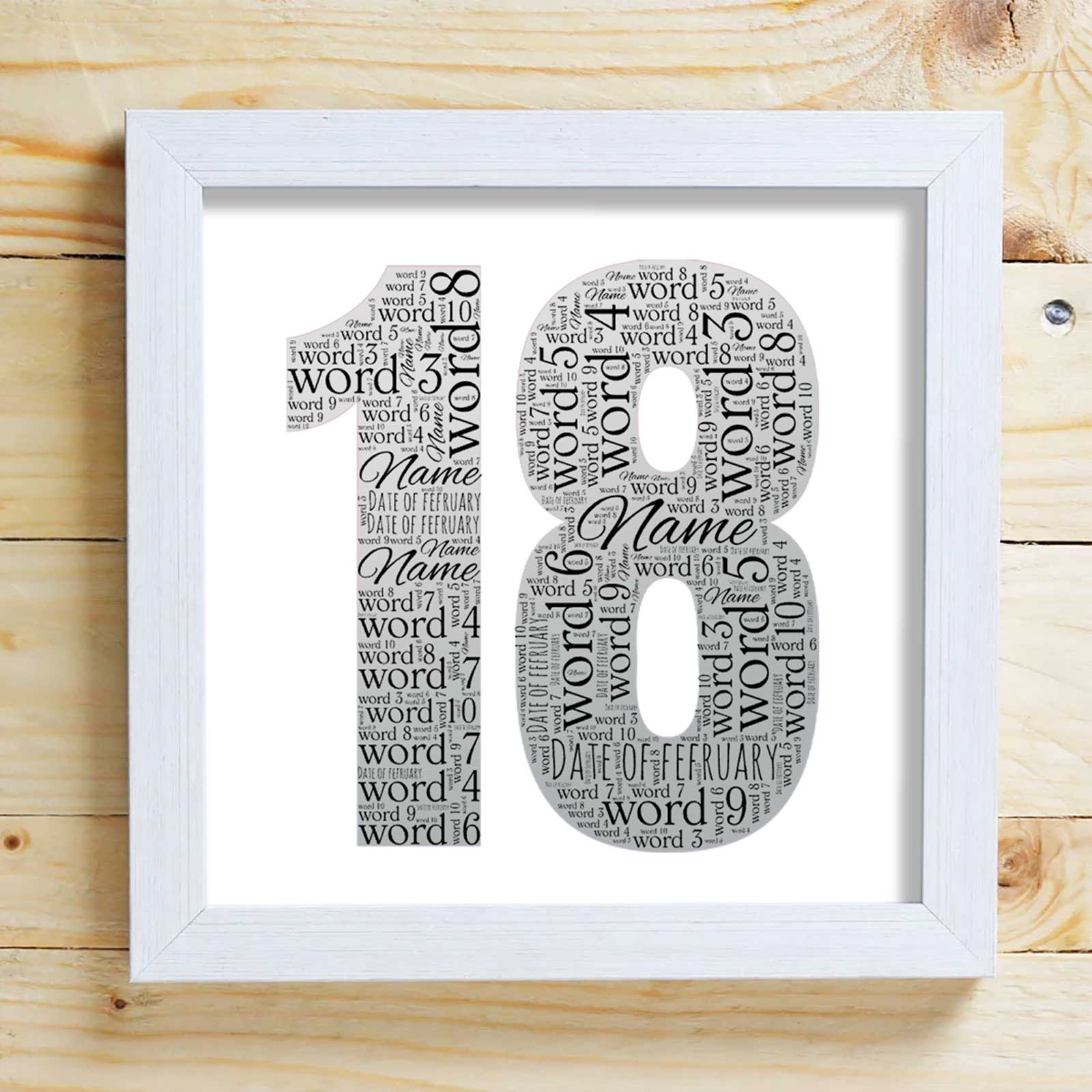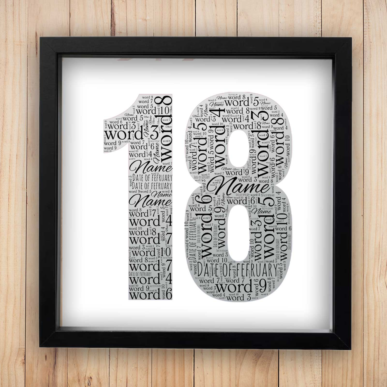 Capture the essence of an 18th birthday with our Word Cloud Box Frame!