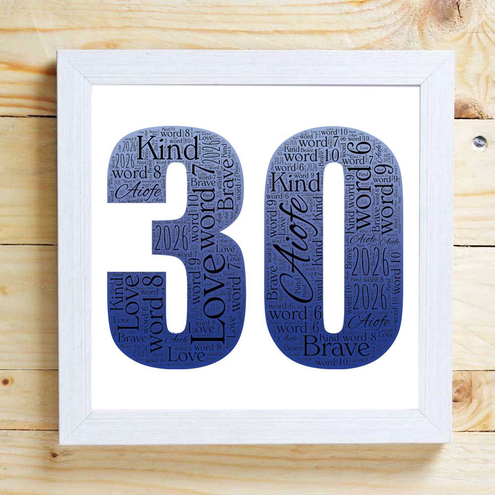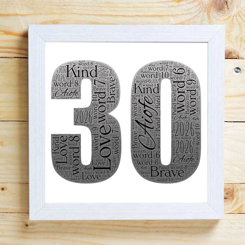 Personalised 30th Birthday Word Cloud Box Frame – Custom Gift for Him or Her
