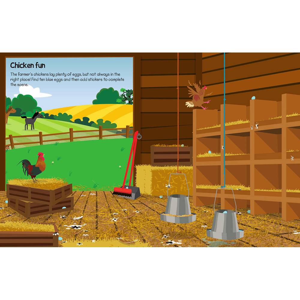 From escaped animals, ploughing and sowing crops to bad weather mishaps and favourite animals, readers can complete the scenes for farm-themed fun using the hundreds of stickers that are included.