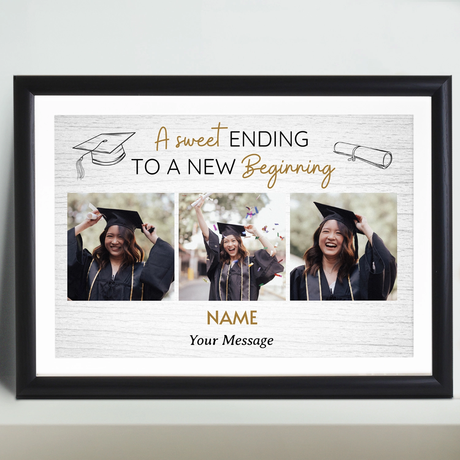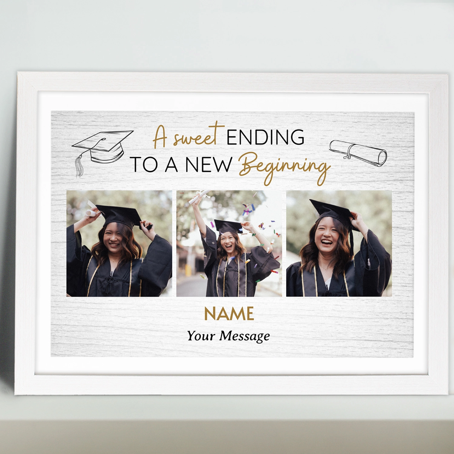 Celebrate graduation in style with our personalised "A Sweet Ending to a New Beginning" poster!