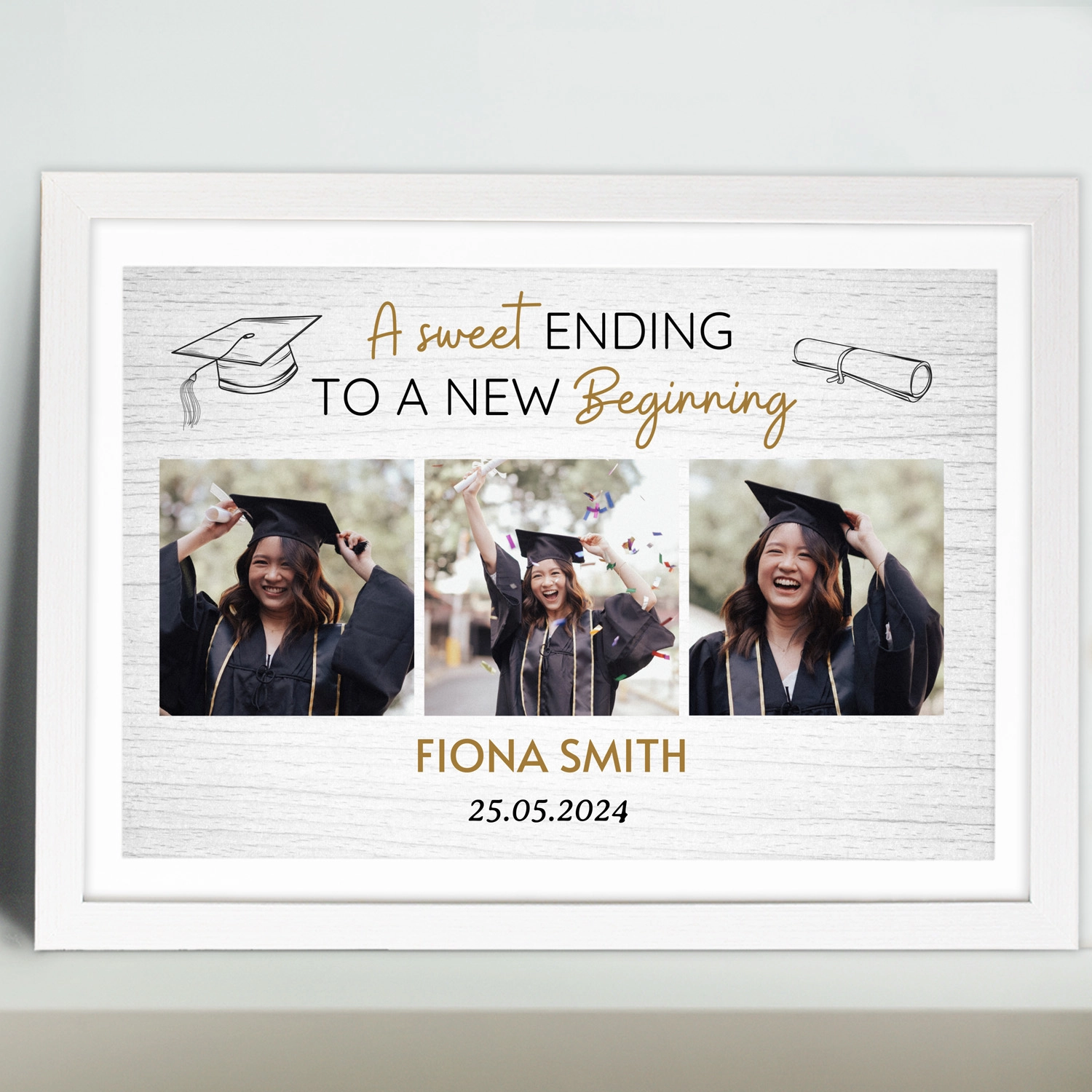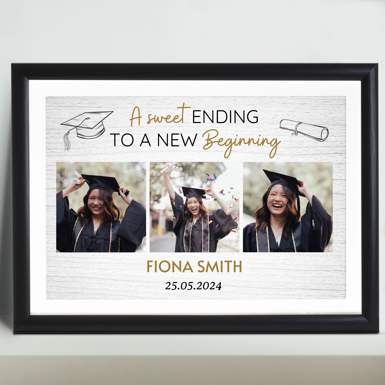 Celebrate graduation in style with our personalised "A Sweet Ending to a New Beginning" poster!
