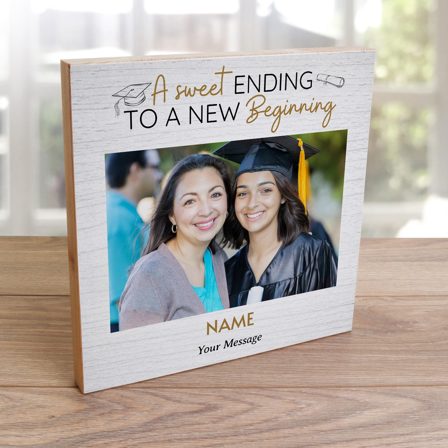 A Sweet Ending To A New Beginning Graduation Wooden Photo Block