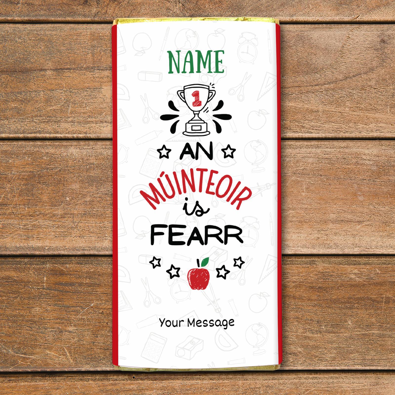 An Múinteoir Is Fearr (Best Teacher) Personalised Chocolate Bar