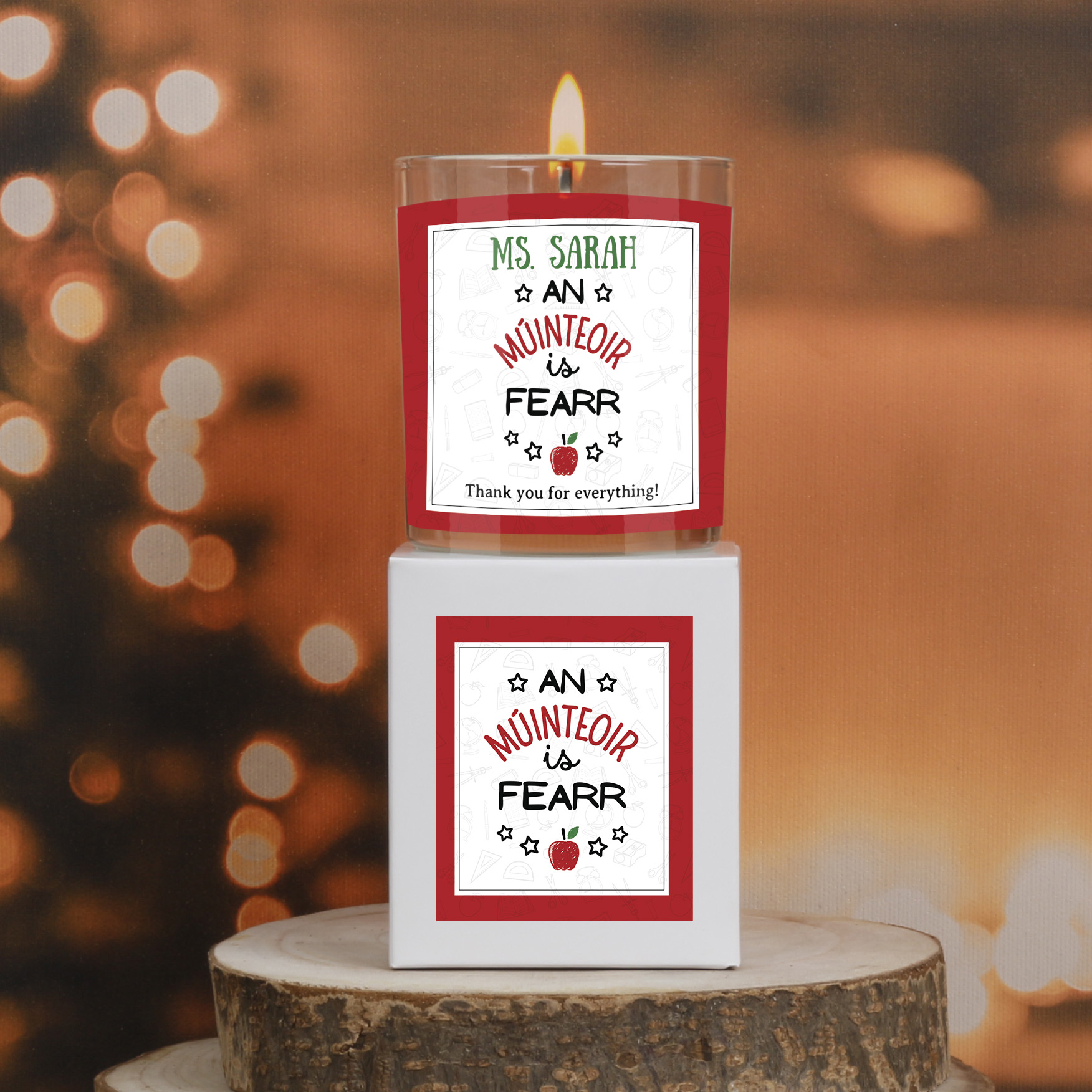 Find the perfect gift for teachers with our Personalised Scented Soy Candles, proudly made in Ireland.