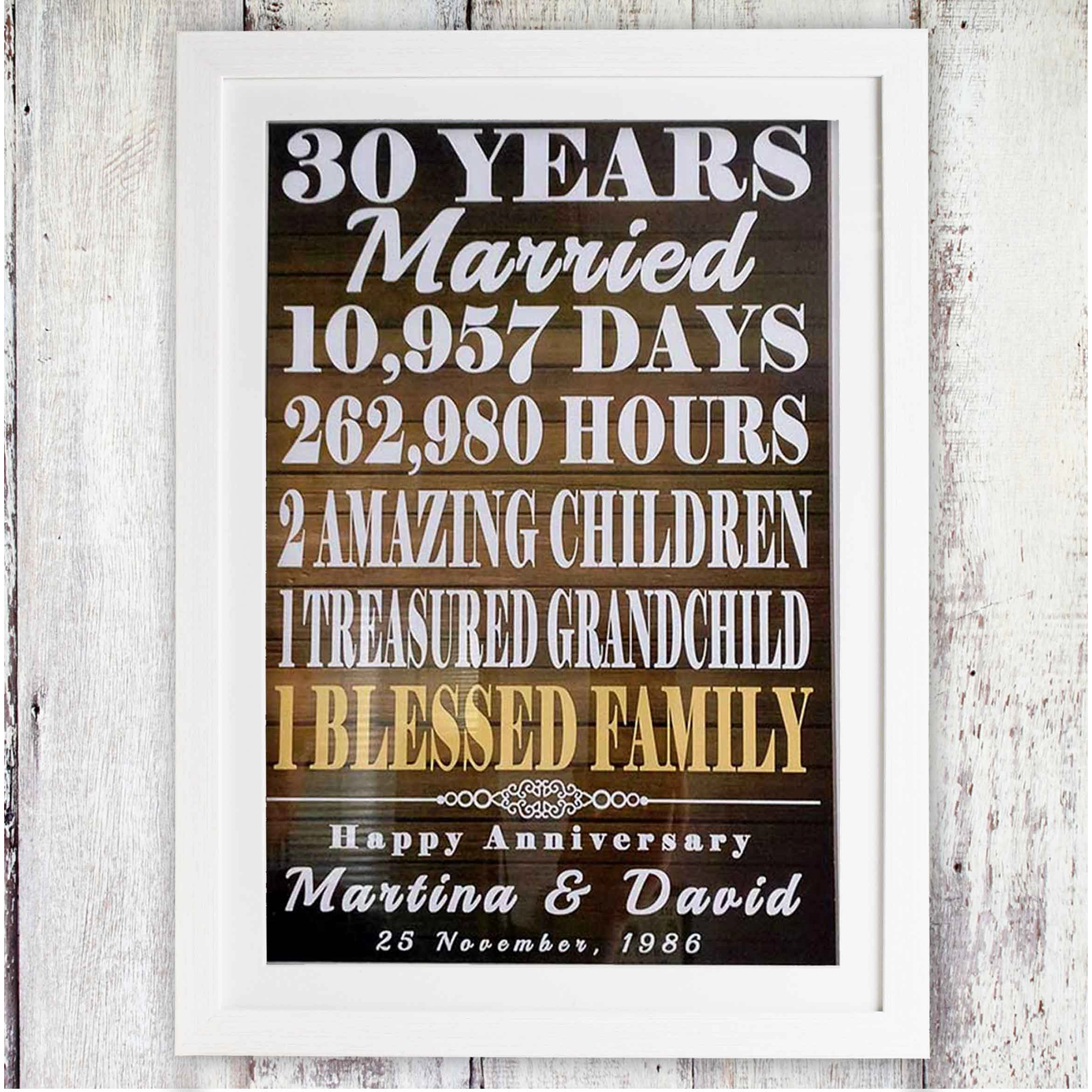 Fill in the number of years, children & optionally grandchildren and we'll we'll print this personalised A3 framed poster making an ideal anniversary gift!