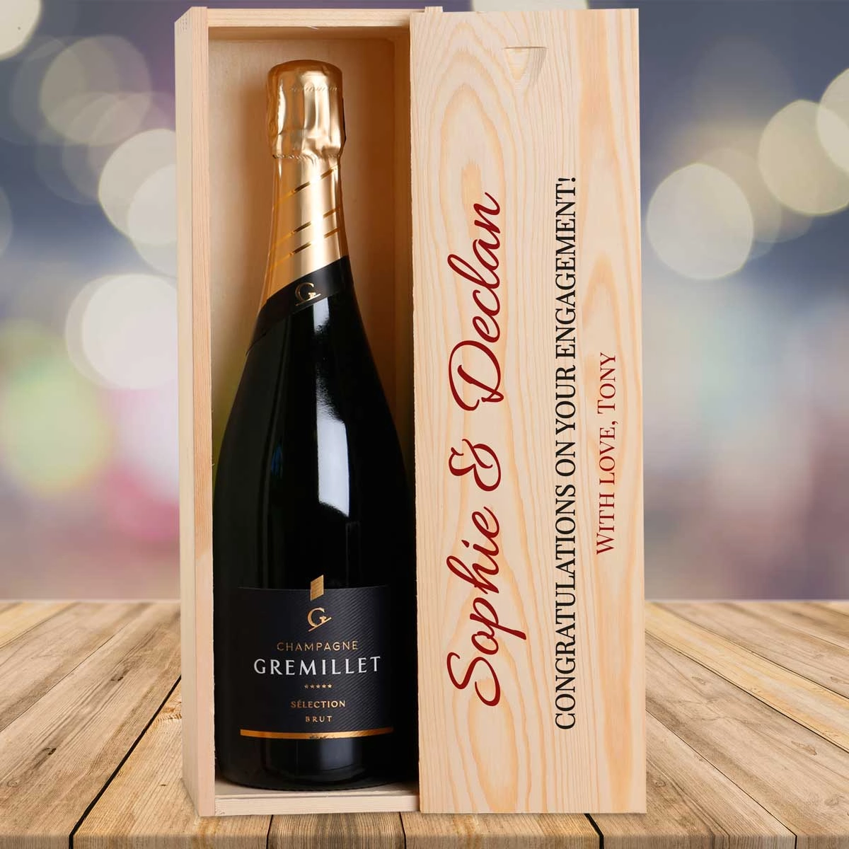 This personalised wooden box with a bottle of Champagne makes the perfect gift for any Couple's occasion!