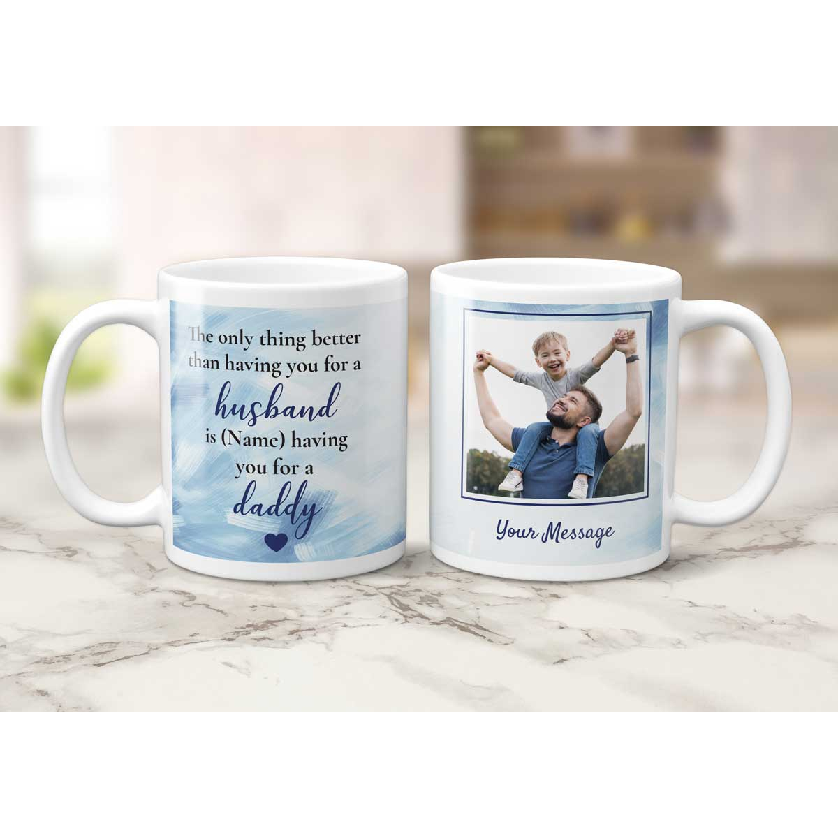 Any Message And Photo Husband And Daddy Blue - Personalised Mug