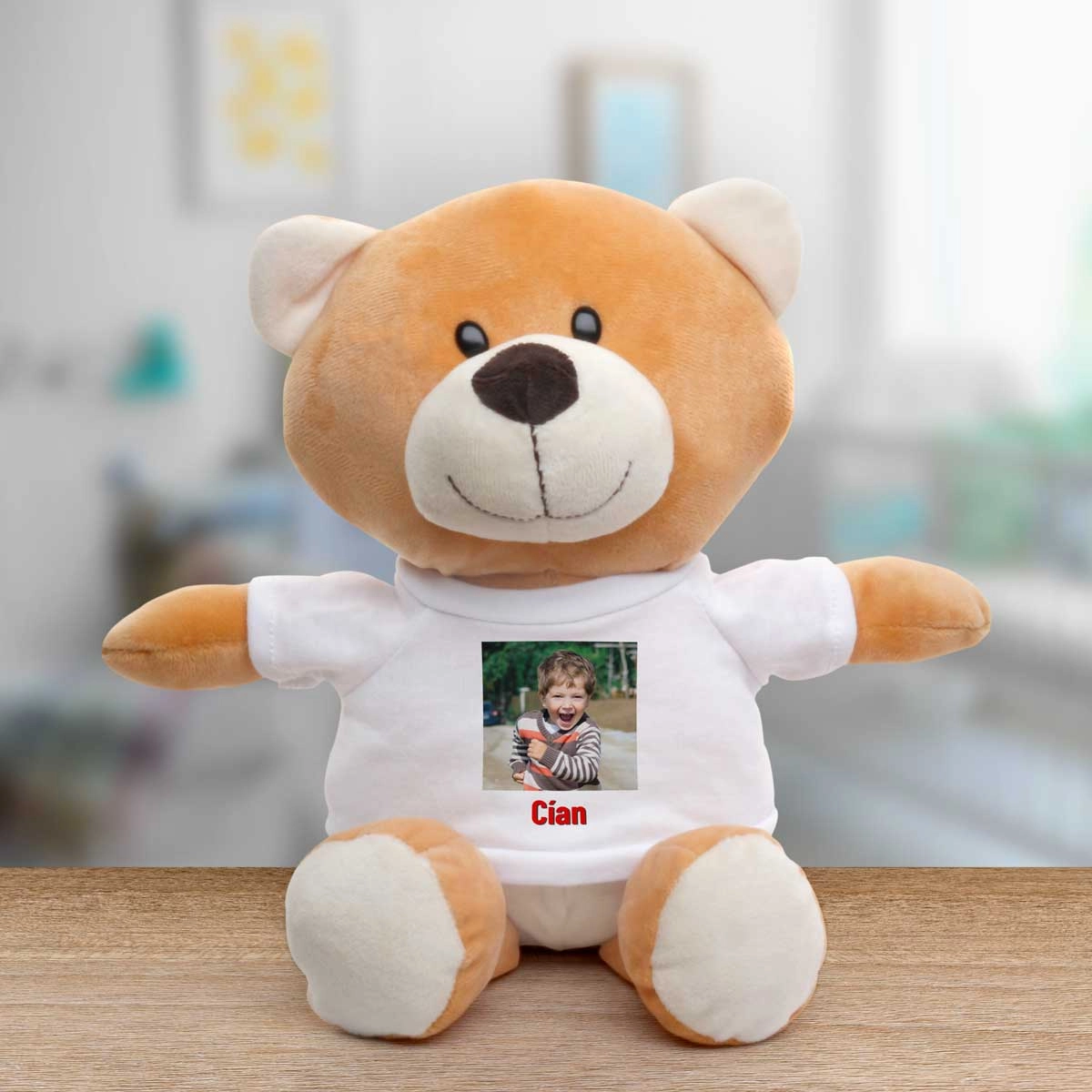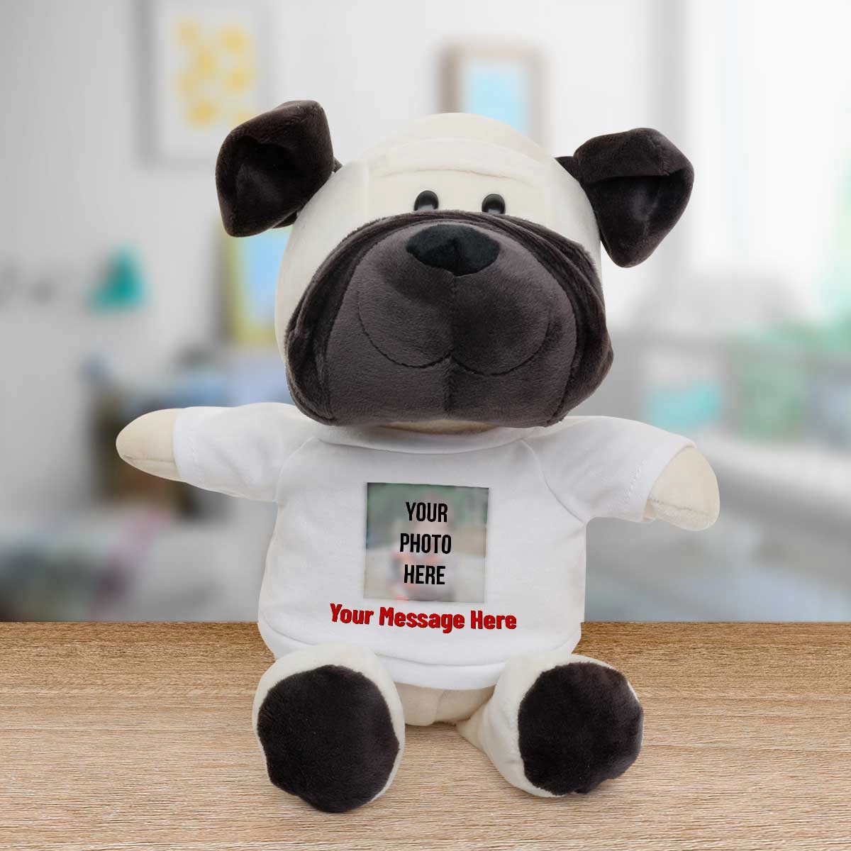The animal's t-shirt is personalised to include your special message.