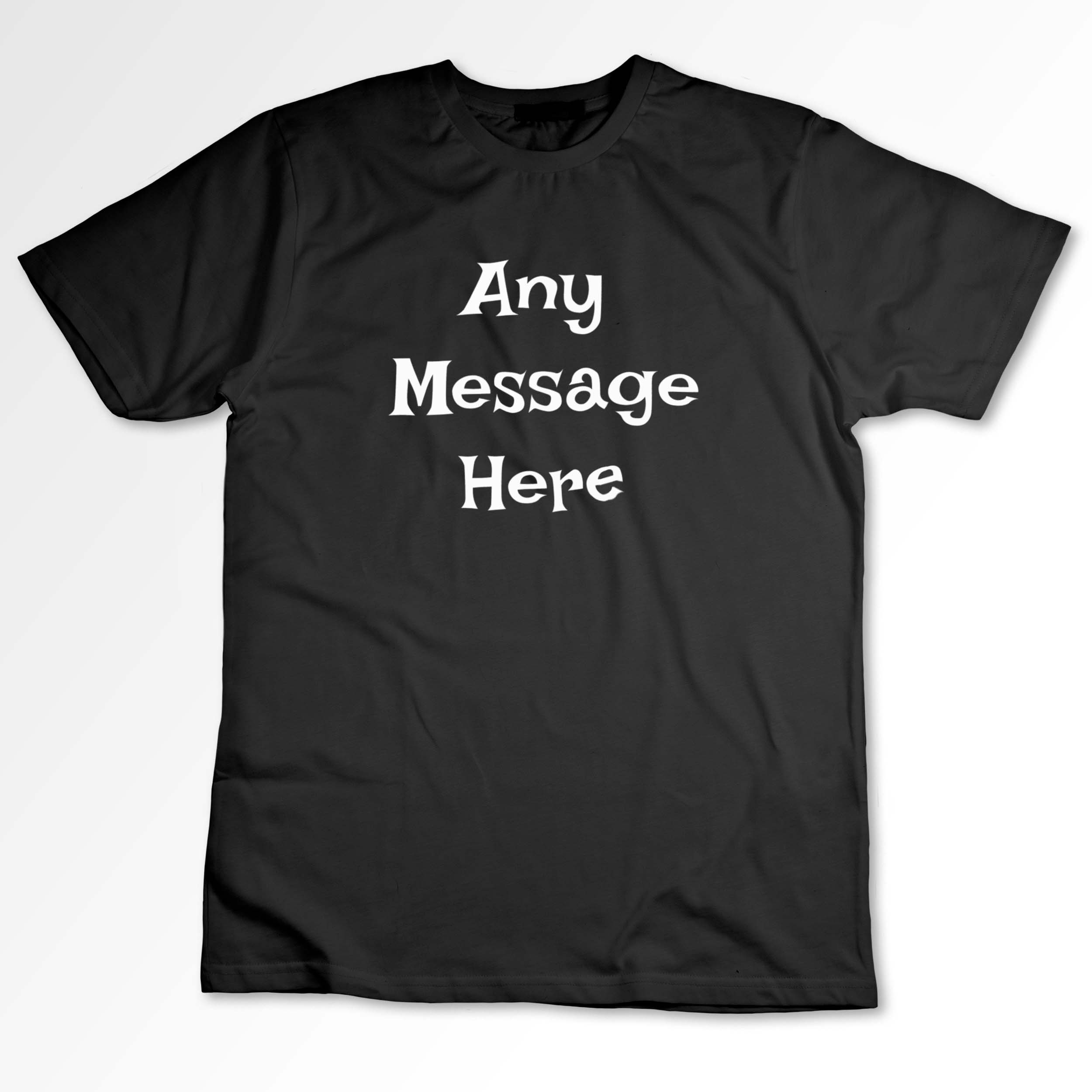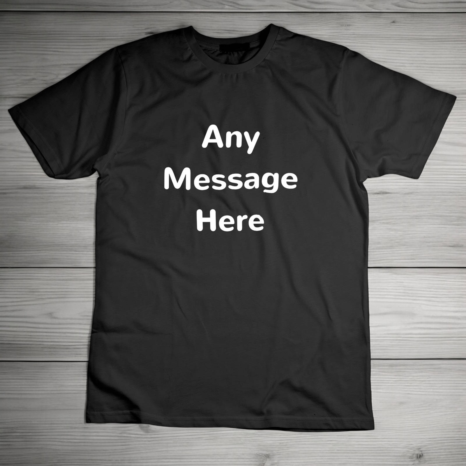 You can personalised this t-shirt with any text of your choice, up to 5 lines long, 18 characters per line.