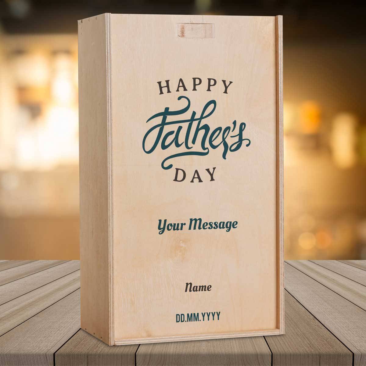 Any Message Happy Father's Day Blue - Personalised Wooden Double Wine Box