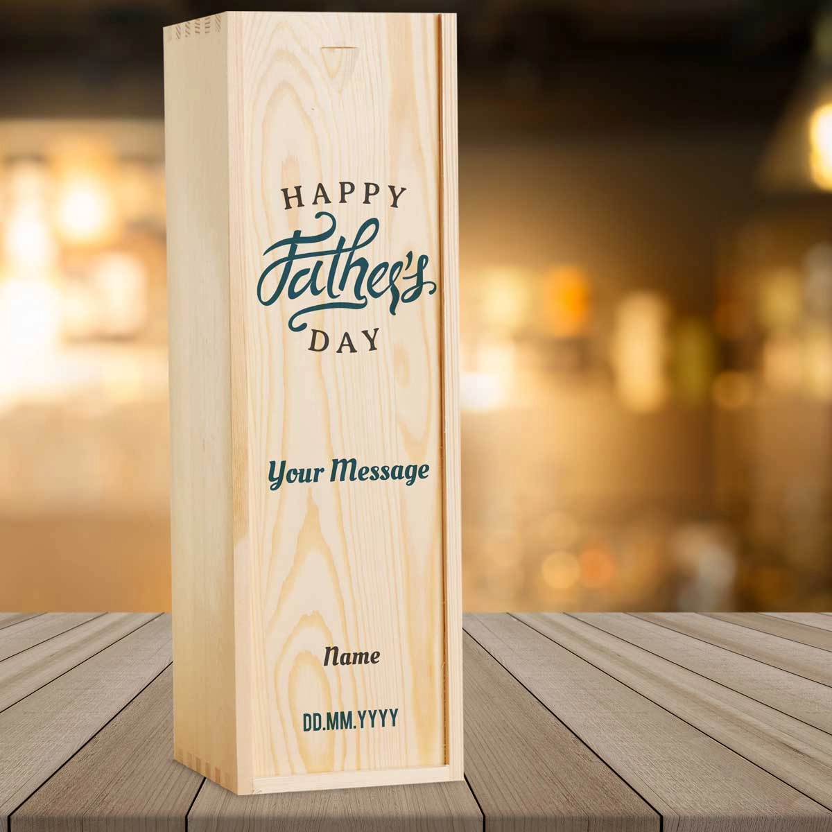 Any Message Happy Father's Day Blue - Personalised Wooden Single Wine Box