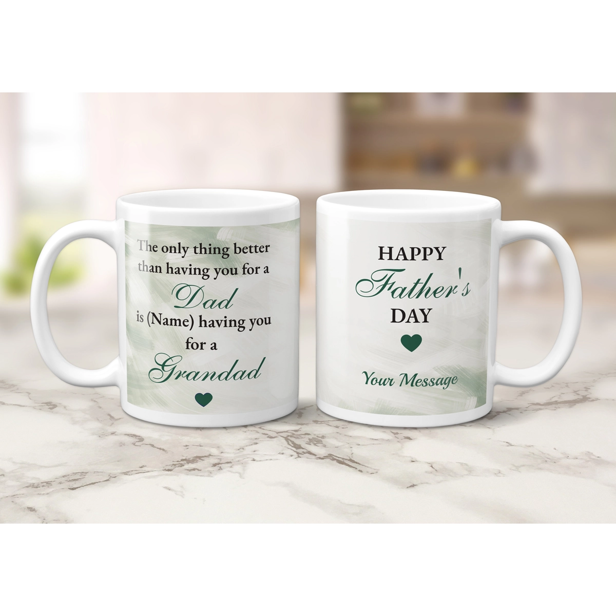 Any Message Happy Father's Day Dad And Grandad Green - Personalised Mug