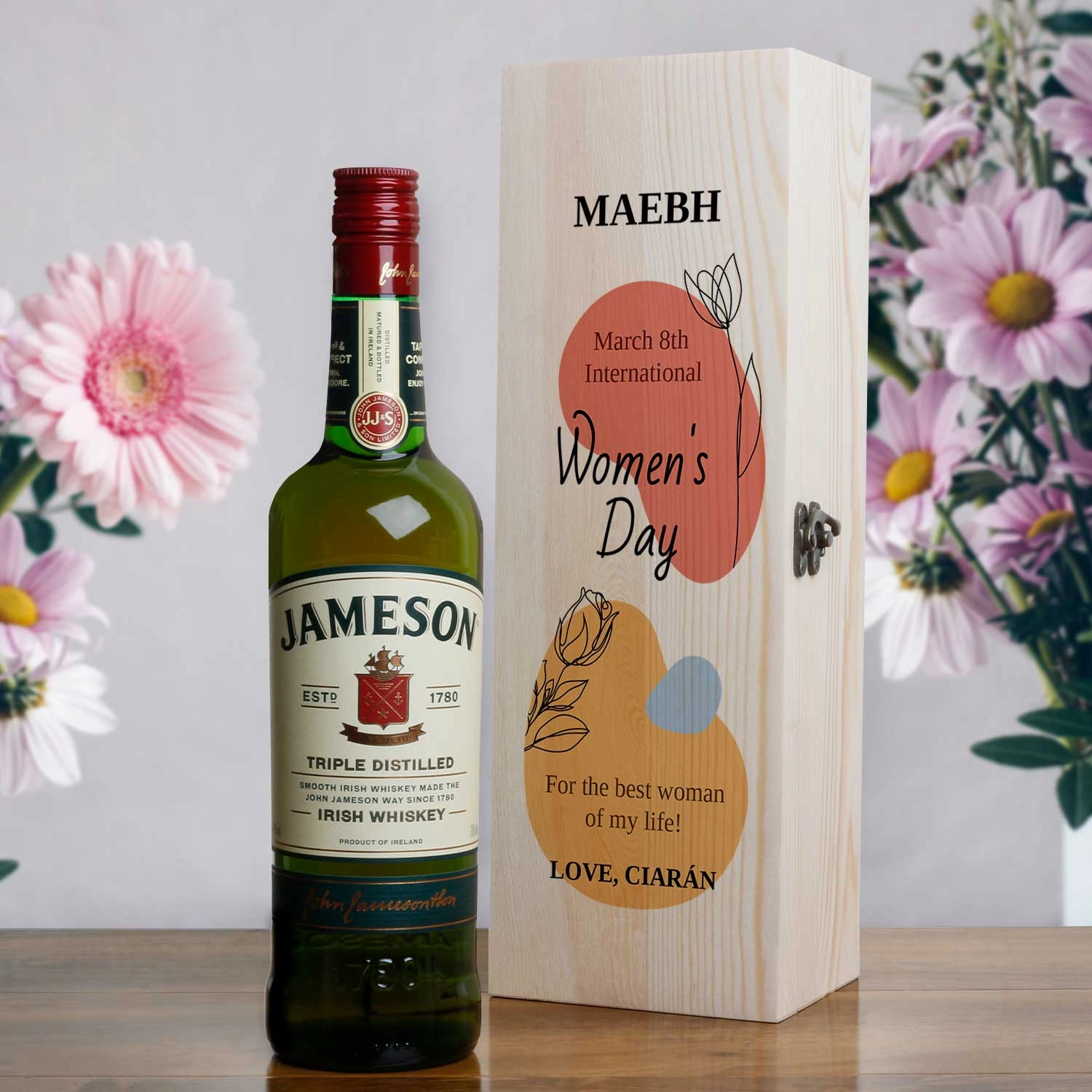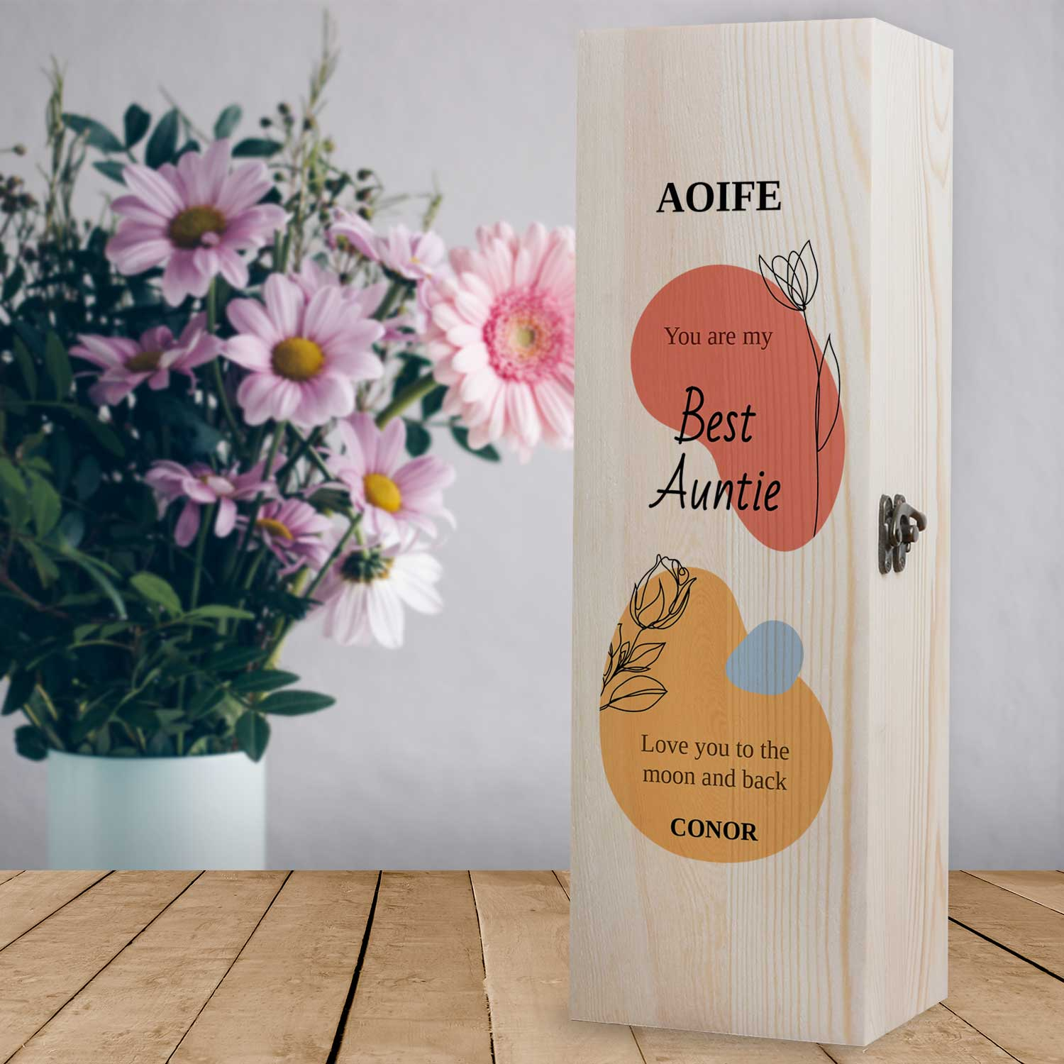 This personalised wooden box is perfect for a Women's Day gift! This elegant box is designed to store and showcase her favourite bottle. Whether she's a wine lover, collector, or just appreciates beautiful things, this box will be a cherished addition to her collection. Show her how much you care on Women's Day with a one-of-a-kind personalised wooden box.