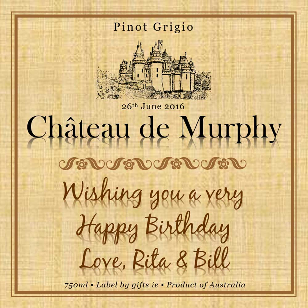This novel bottle of personalised wine is truly a great gift to celebrate and commemorate your recipient's occasion. Simply complete the details and we'll have the wine label custom printed with your personalised details.