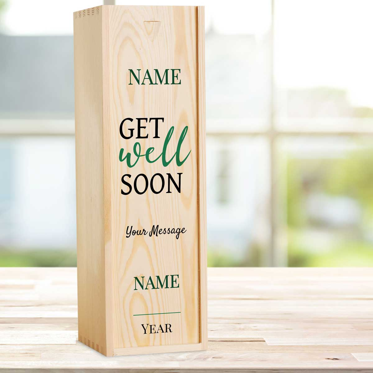 Any Name Get Well Soon - Personalised Wooden Single Wine Box