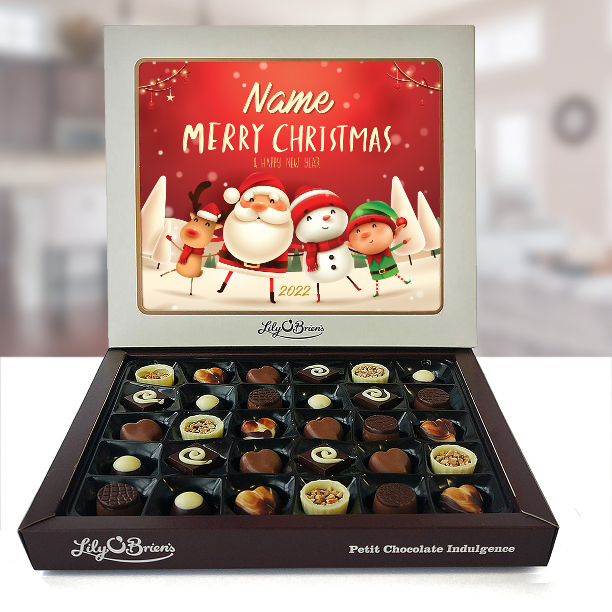 This Personalised Chocolate Box is filled with the Lily O'Brien's Luxury Chocolate collection. Approximate box dimensions: 290mm x 240mm x 40mm.