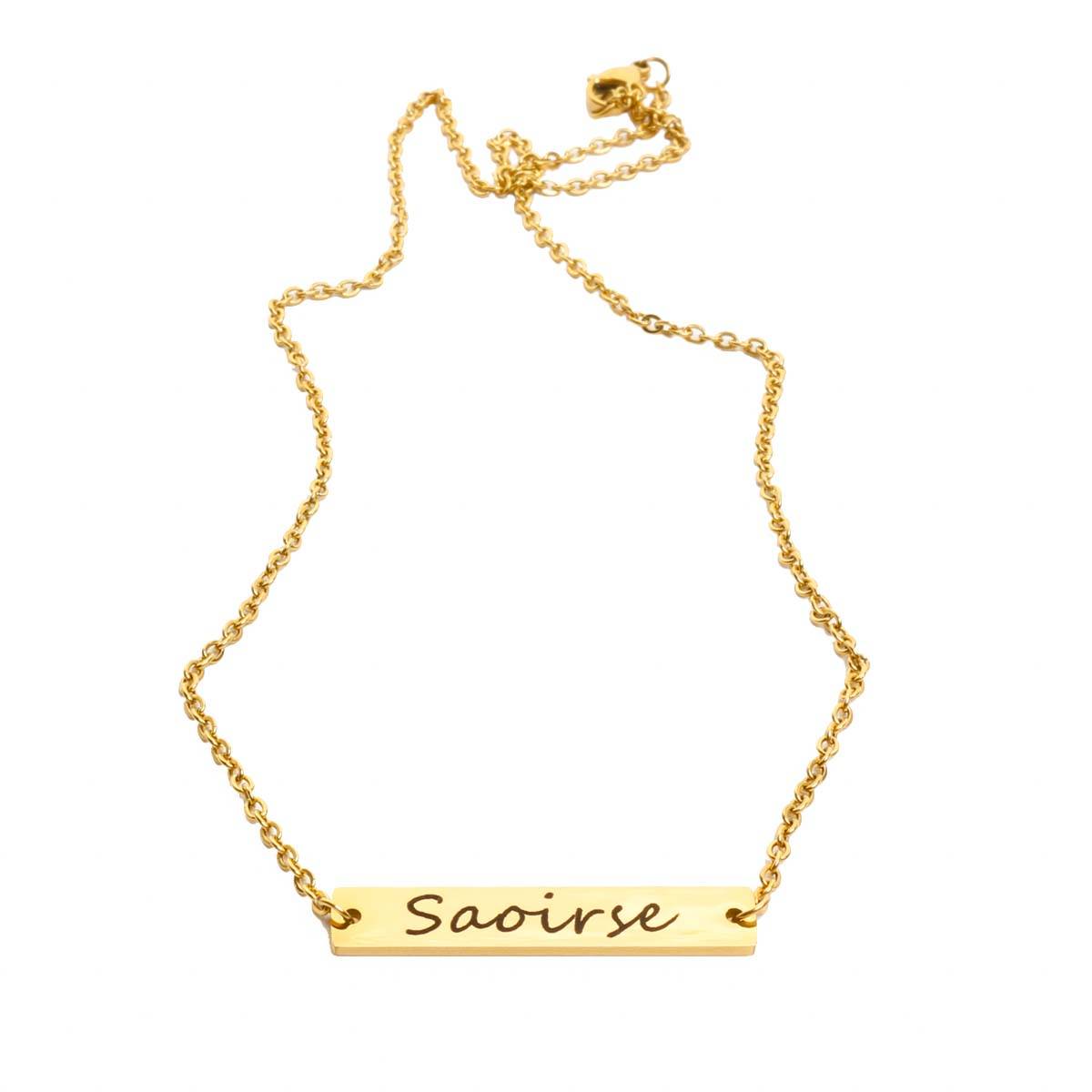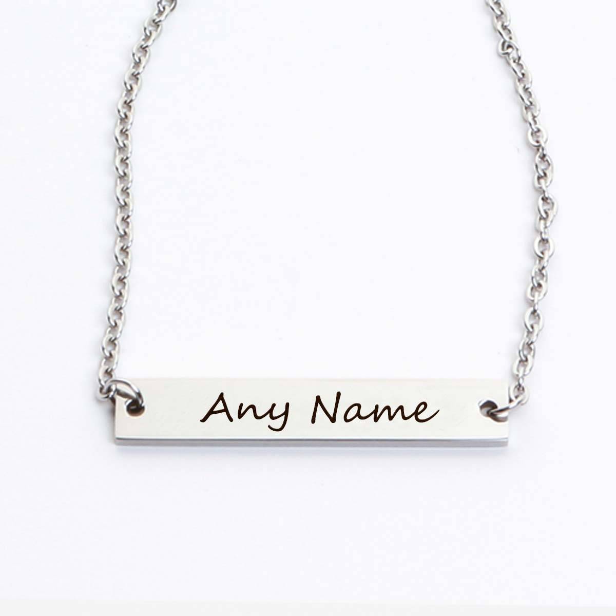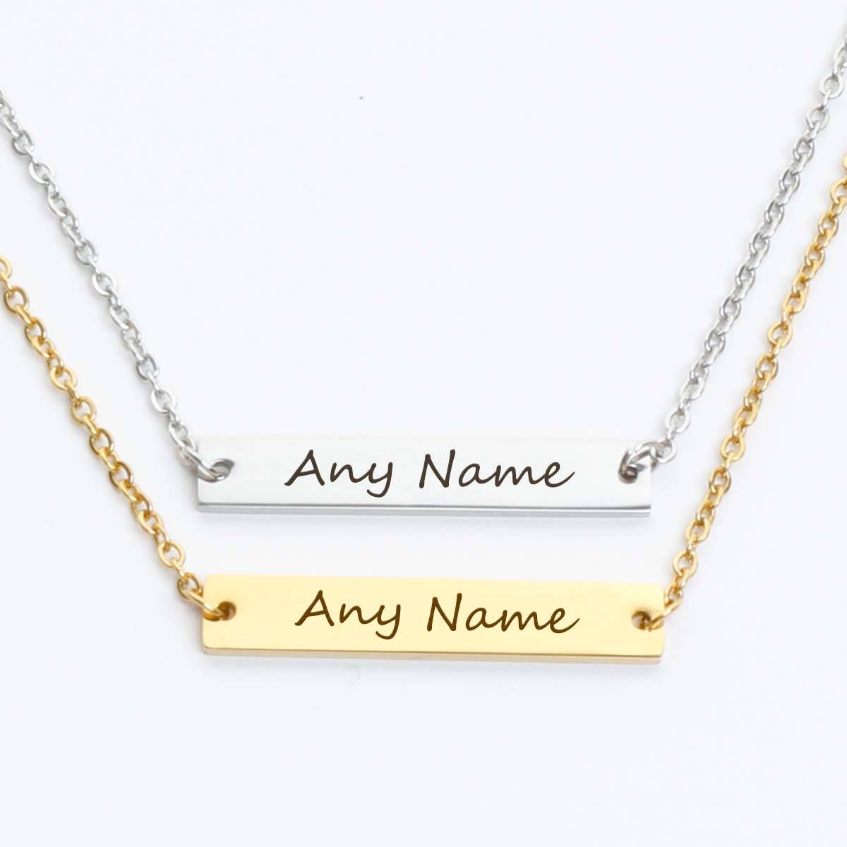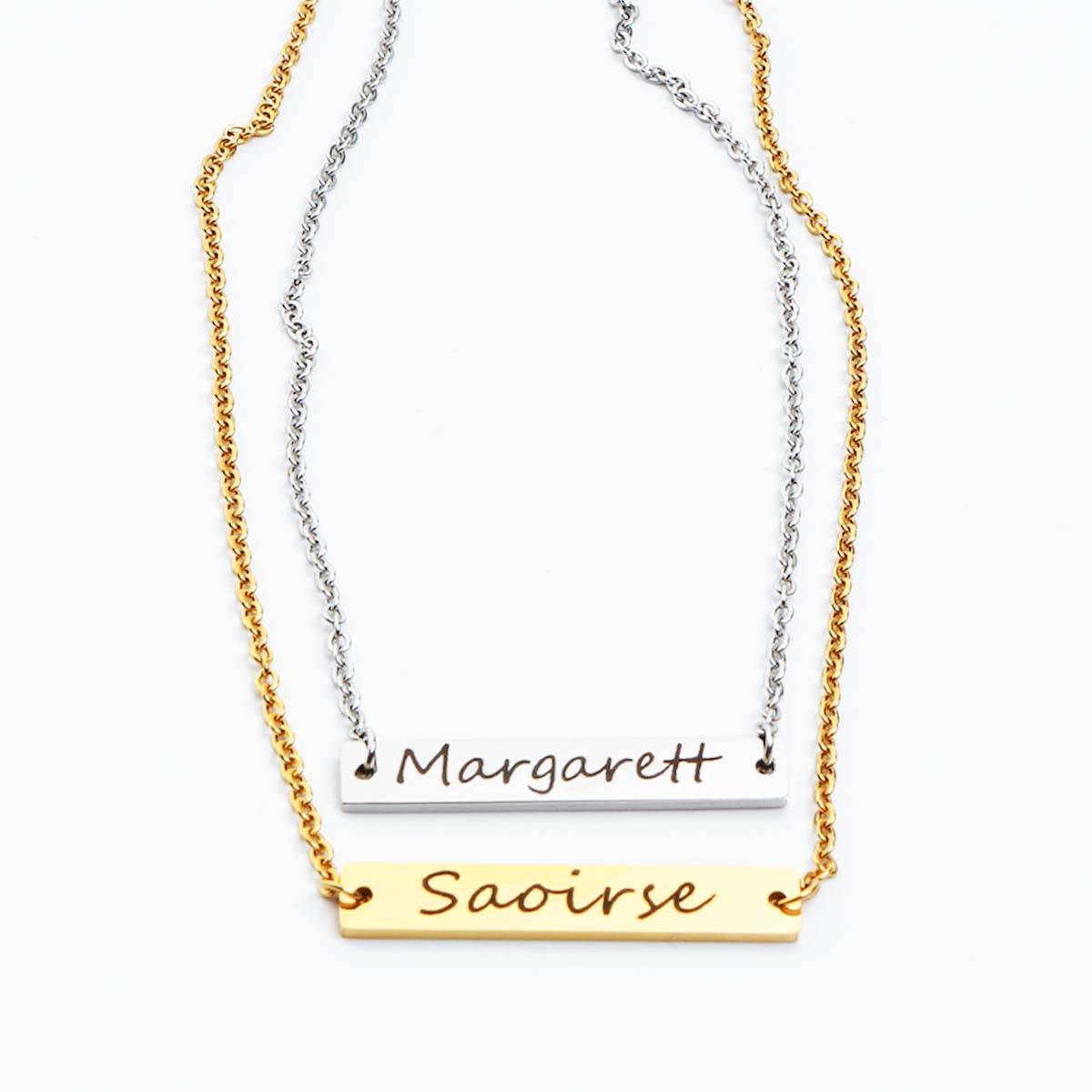 The Personalised Flat Bar Pendant hanging from a Box chain, makes the perfect accessory for any occasion.