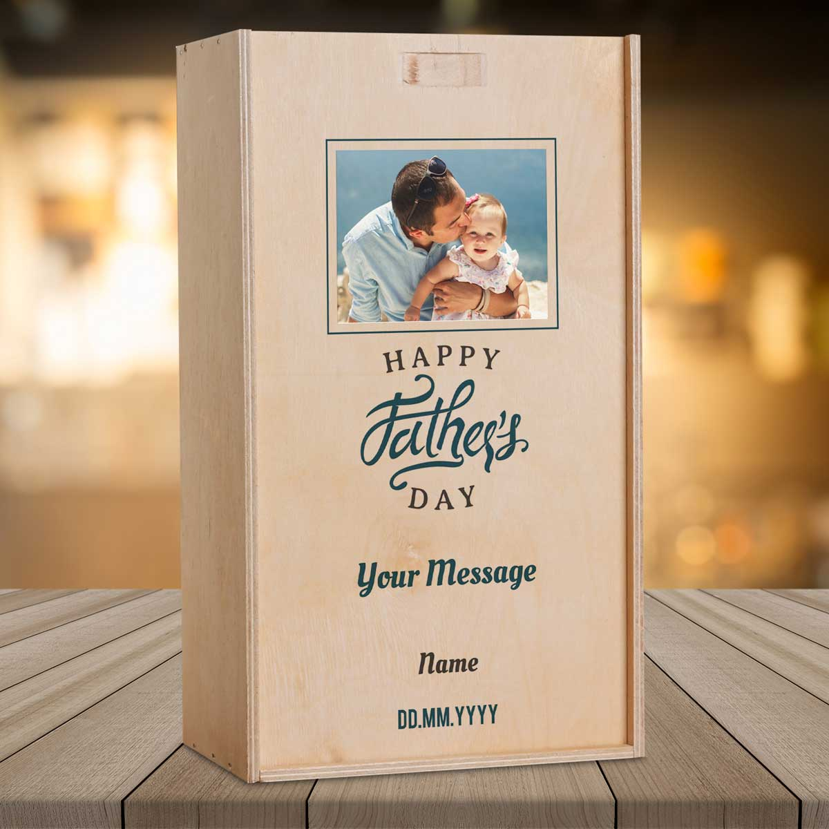 This personalised wine box with two bottles of wine makes the perfect gift for Father's Day.