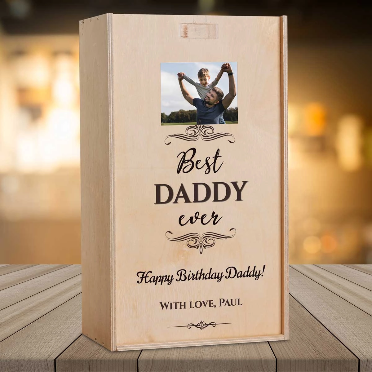Any Photo Best Any Title Ever Black - Personalised Wooden Double Wine Box