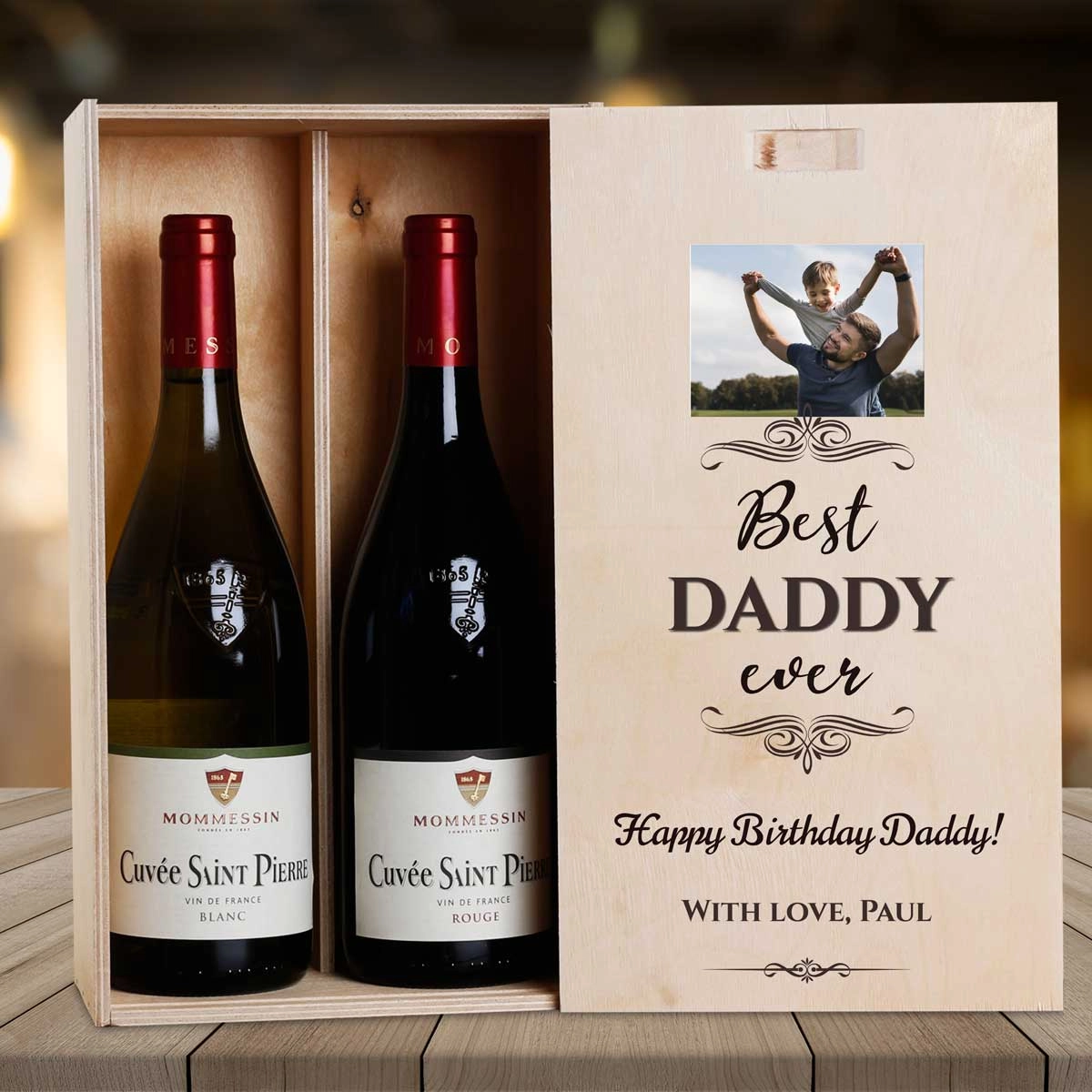 This personalised wine box with two bottles of wine makes the perfect gift for any occasion.
