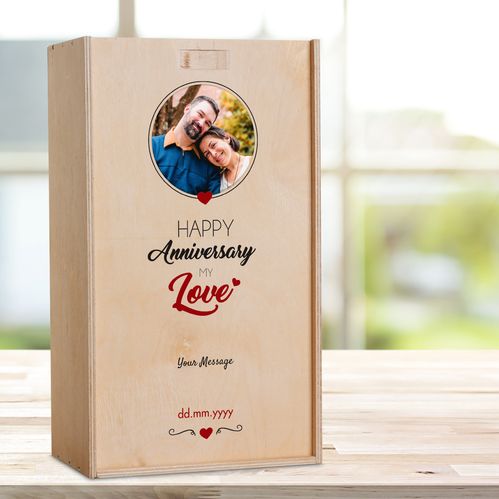 This personalised wine box with two bottles of wine makes the perfect anniversary present.