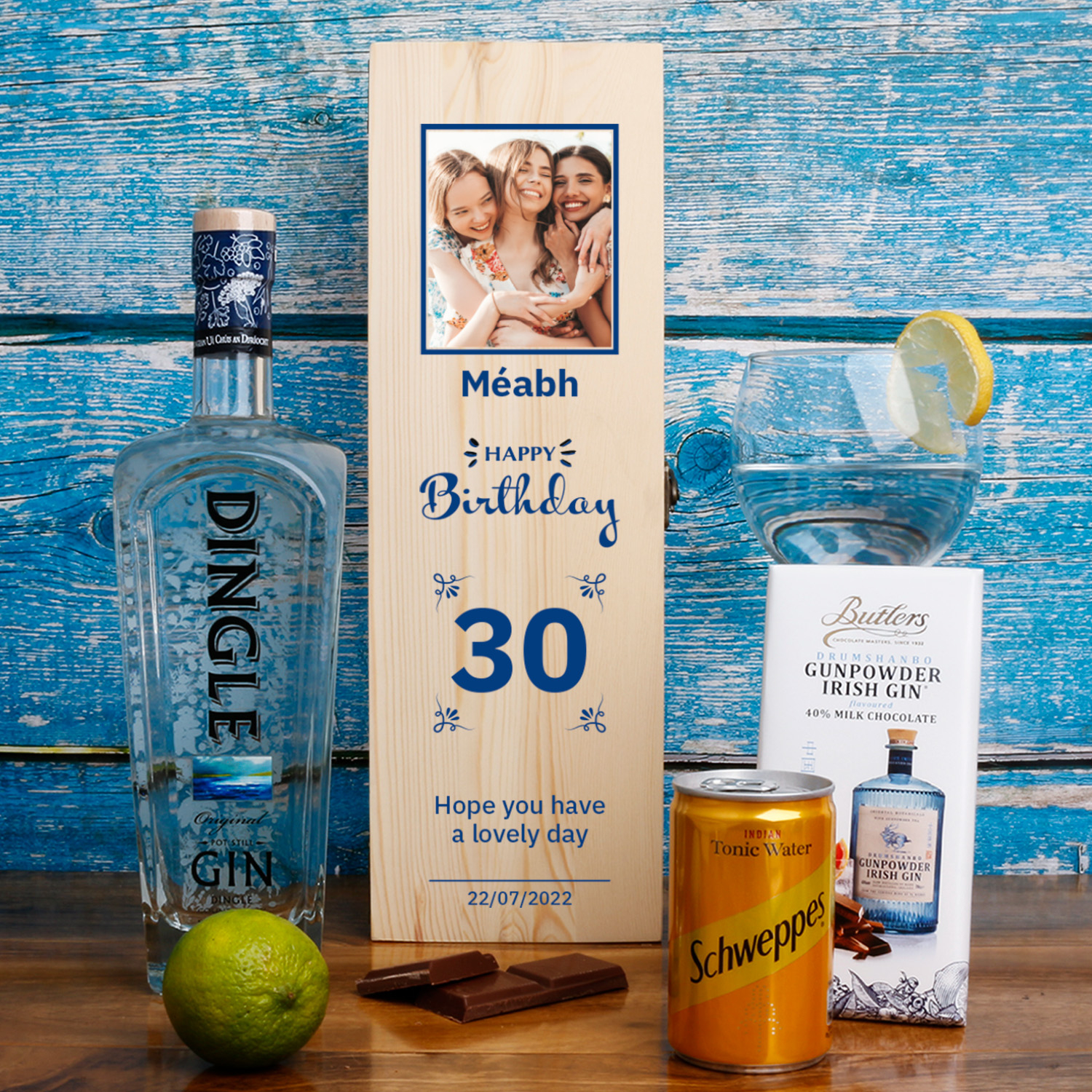 This personalised wooden box with a bottle of Dingle Irish Gin makes the perfect gift for gin lovers' Birthday.