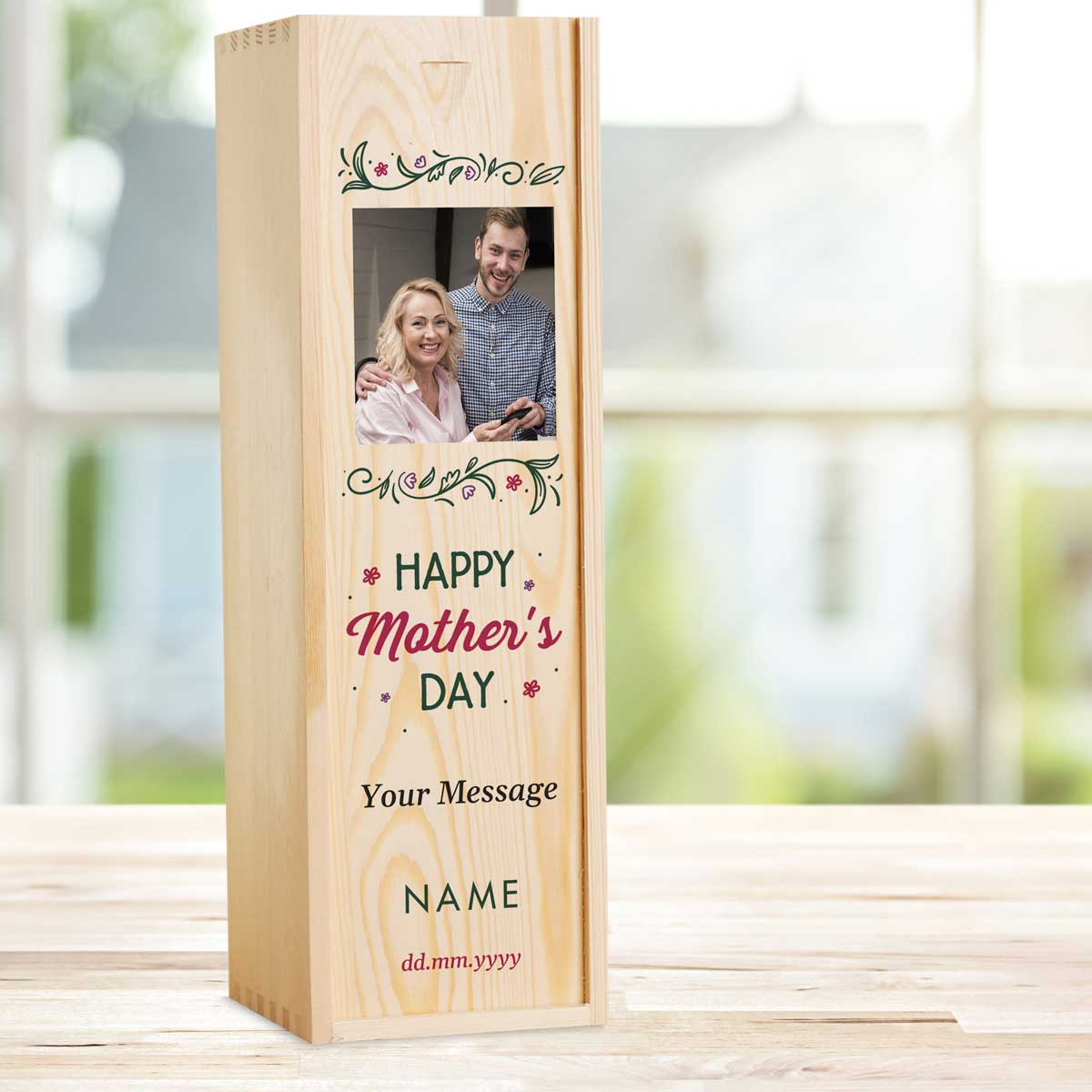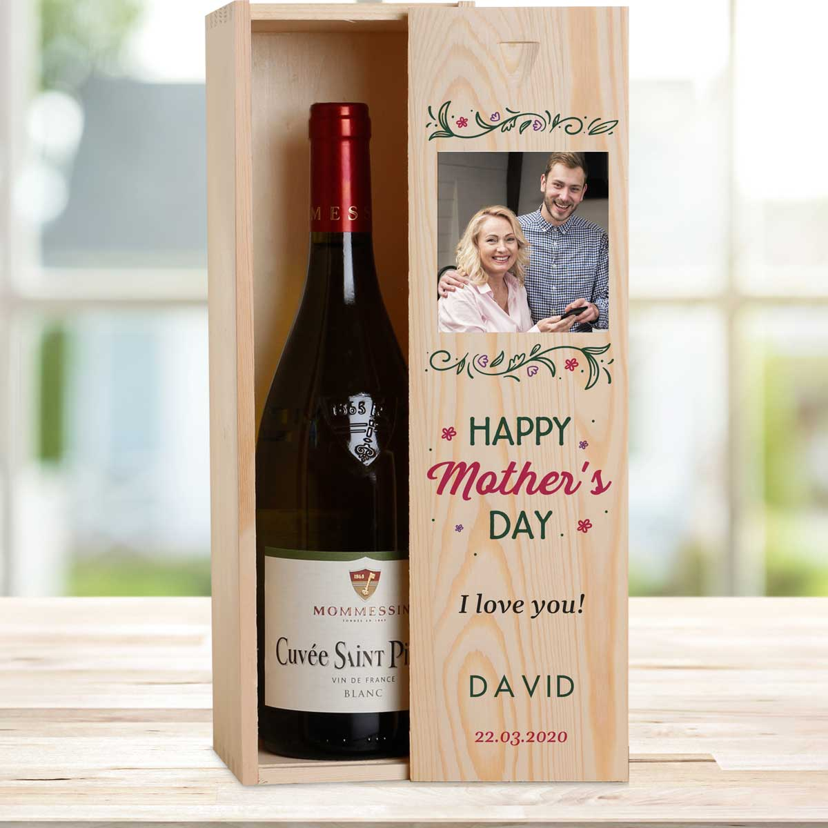This personalised wine box with a bottle of wine makes the perfect present for Mother's day.