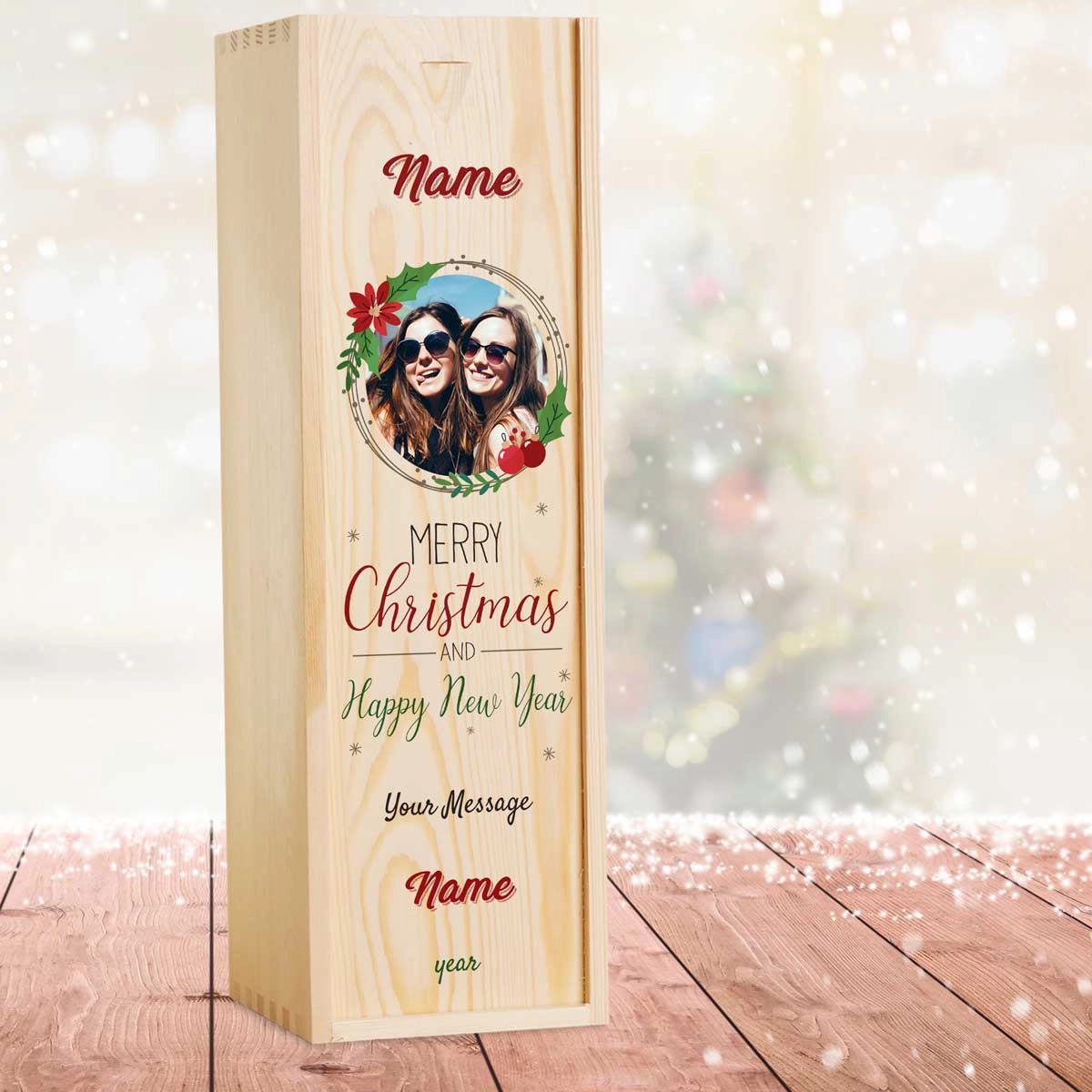 This personalised wine box with a bottle of wine makes the perfect Christmas gift.
