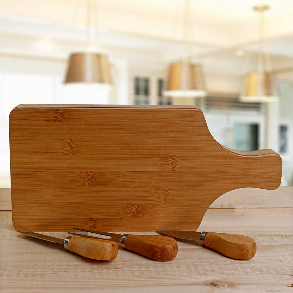 This convenient 4-piece set contains 1 cutting board and 3 cheese knives. These knives have a length of approx. 12 cm and can be washed in the dishwasher.