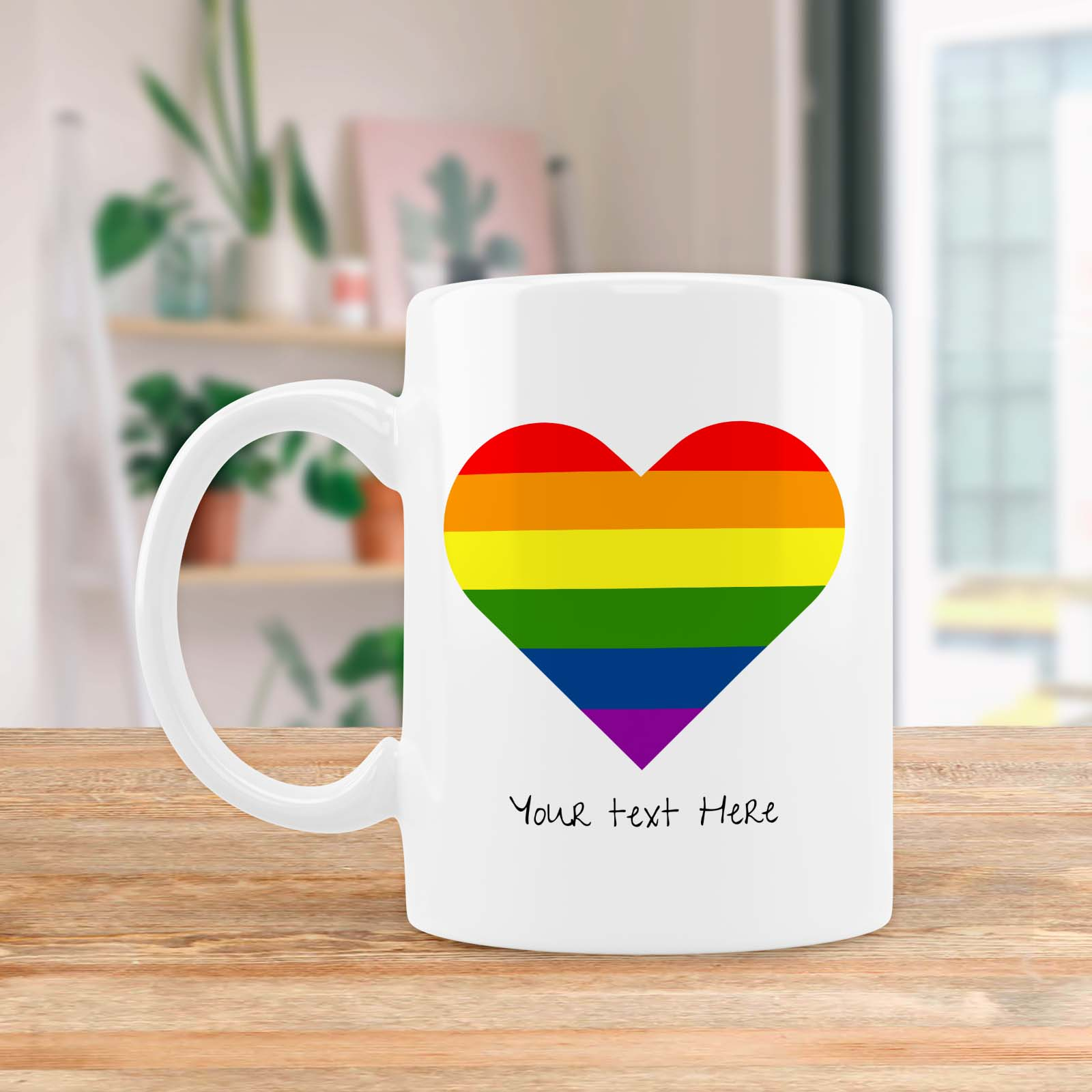 Surprise your loved one with a thoughtful and personal gift that they can use every day - a personalised mug featuring a rainbow heart and any message.