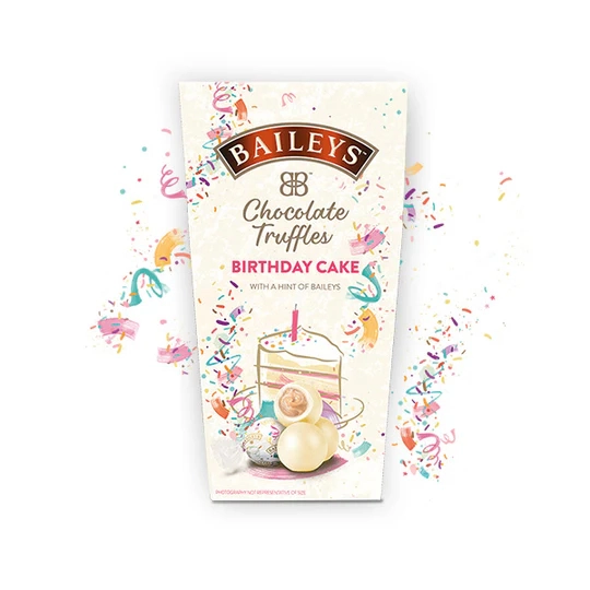 White chocolate truffles with a Baileys™ The Original Irish Cream Liqueur and birthday cake flavour filling.