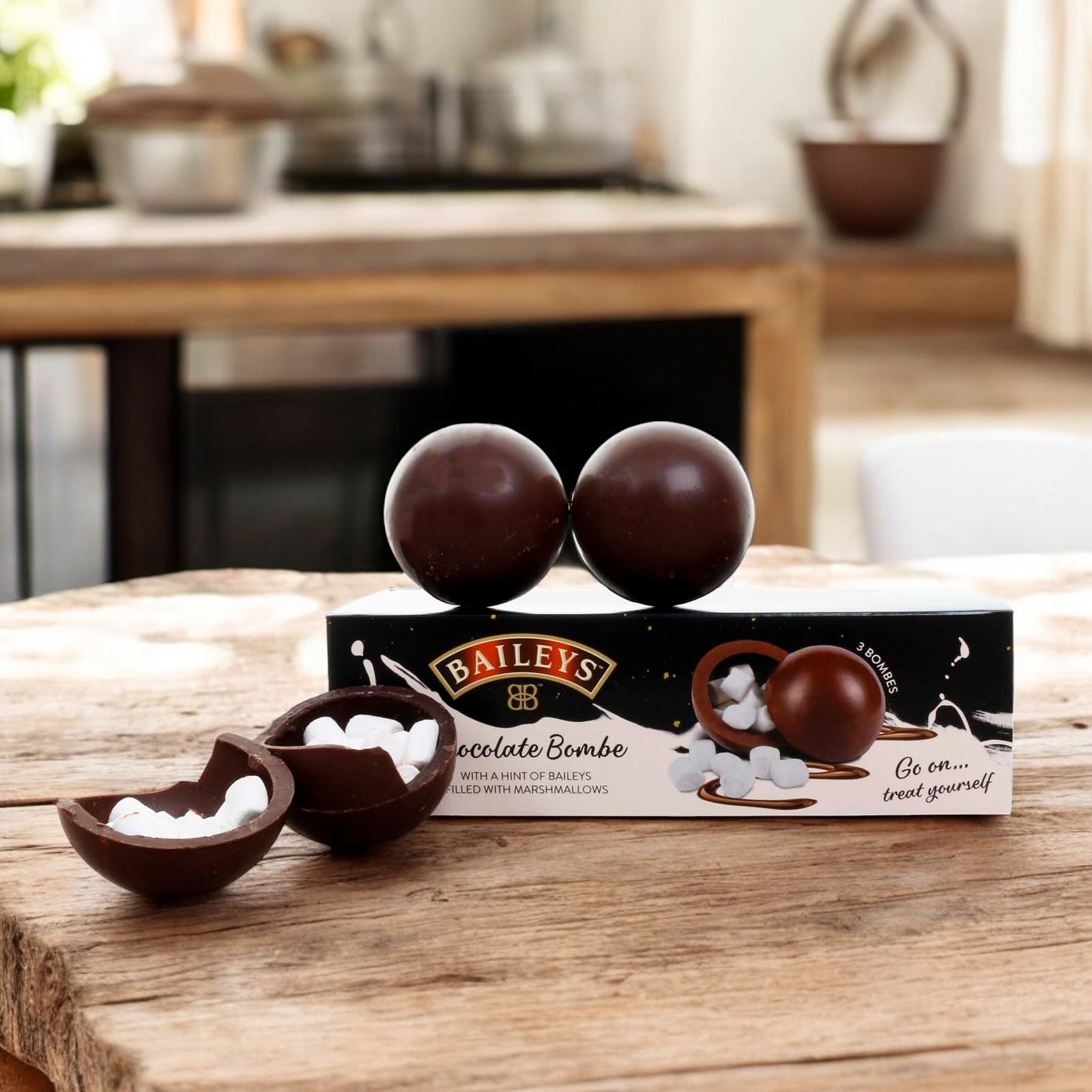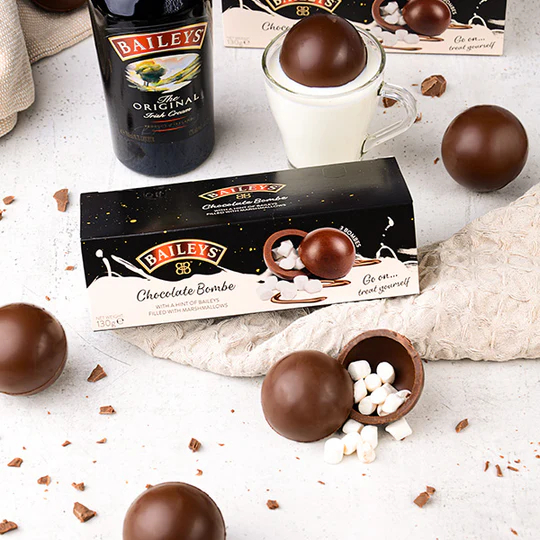 This winter, Create the Ultimate Baileys Hot Chocolate with our Chocolate Bombe, flavoured with Baileys! Each pack contains three Chocolate Bombes, made up of Baileys flavoured milk chocolate with marshmallows.