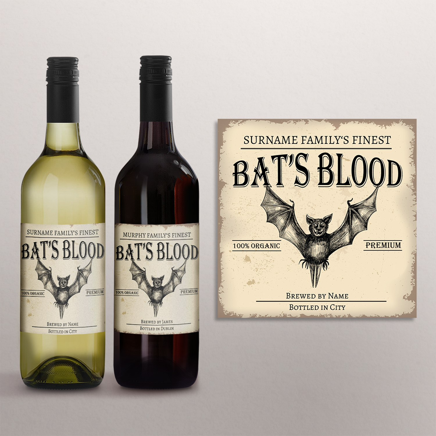Halloween Wine Bottle Labels are personalised as illustrated, perfect for halloween party decoration.