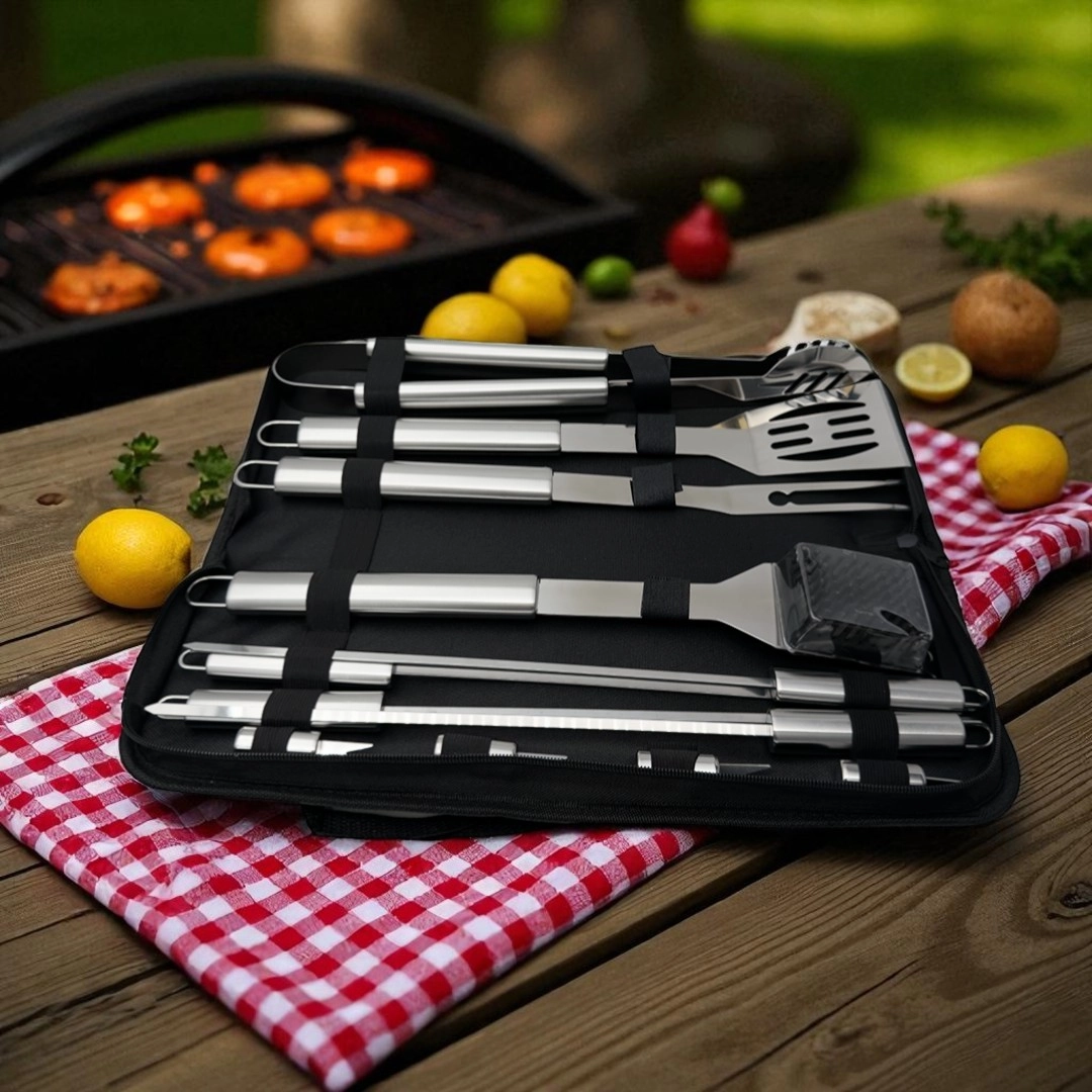 BBQ Tool Set in Carry Bag – The Ultimate 12-Piece Stainless Steel Grilling Kit