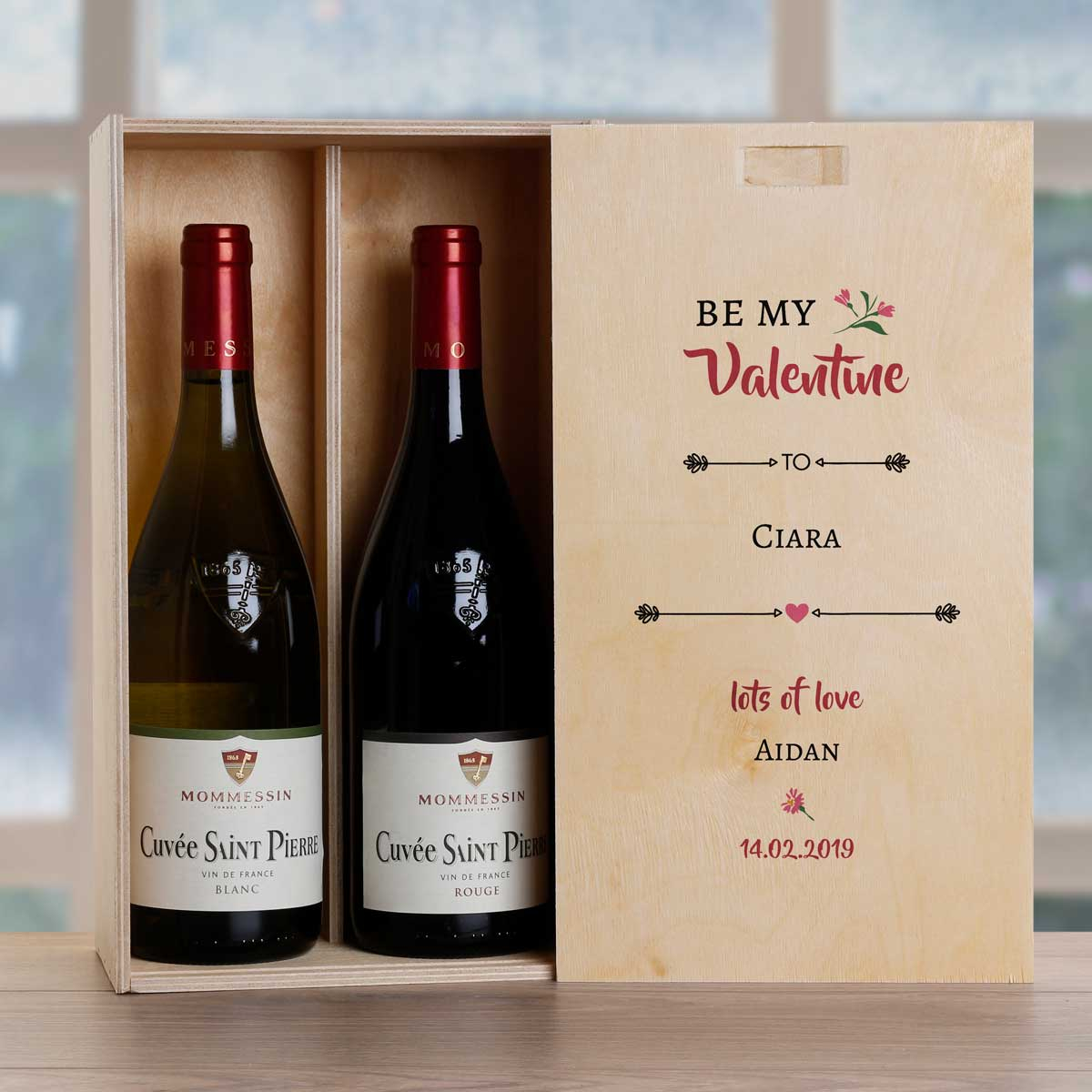 This personalised wine box with two bottles of wine makes the perfect Valentine's Day gift.