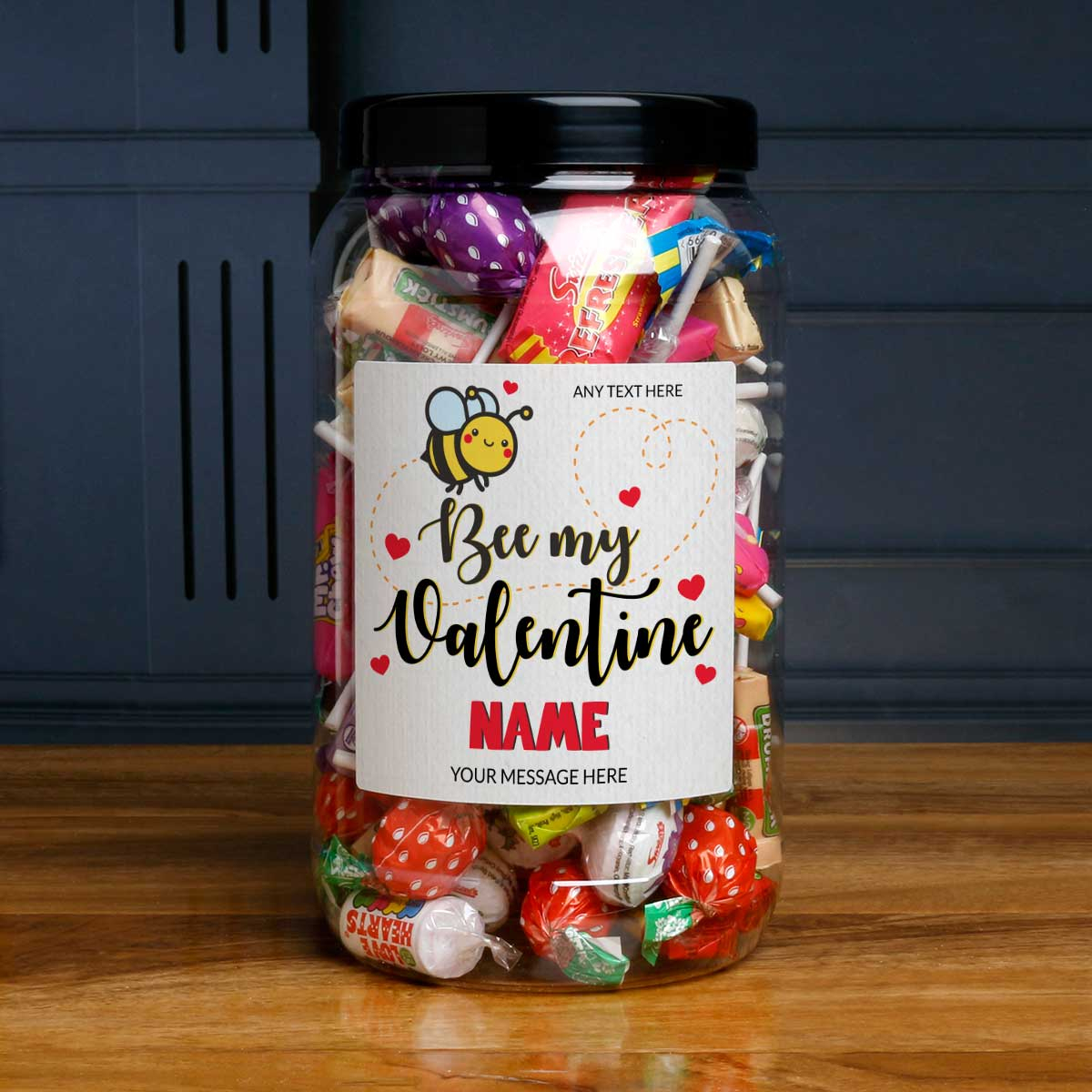 Packed full of Love Heart sweets, the jar's label is personalised with your recipient's name and your greeting.