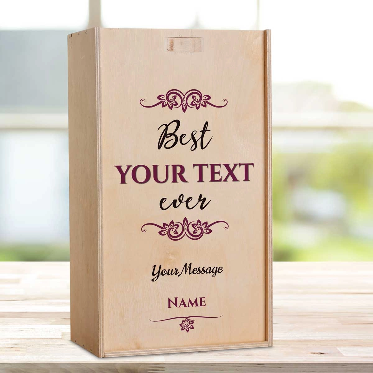 Best Any Title Ever Burgundy - Personalised Wooden Double Wine Box