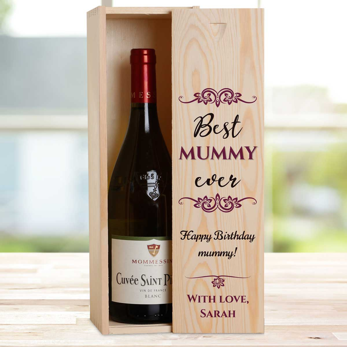 This personalised wine box with a bottle of wine makes a great gift for any occasion.