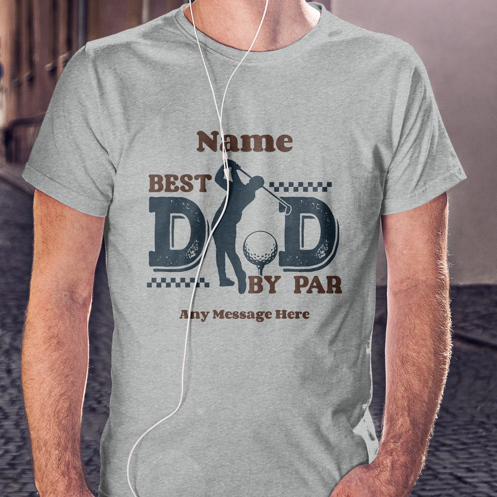 A hole-in-one gift for any golf-loving dad! This stylish t-shirt features the fun message “Best DAD by Par” with a cool golfer silhouette and can be personalised with any name and message, making it a truly unique gift.