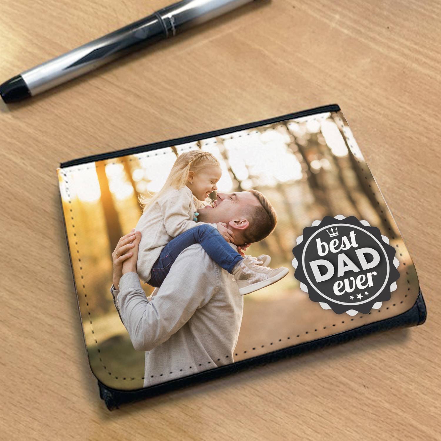 This unique wallet is made of faux black leather. It has seven internal compartments for cards and documents.