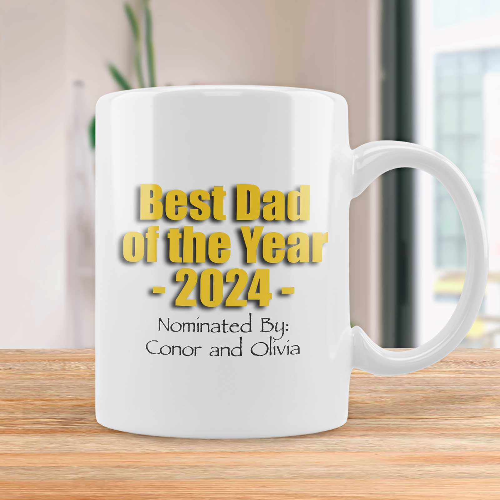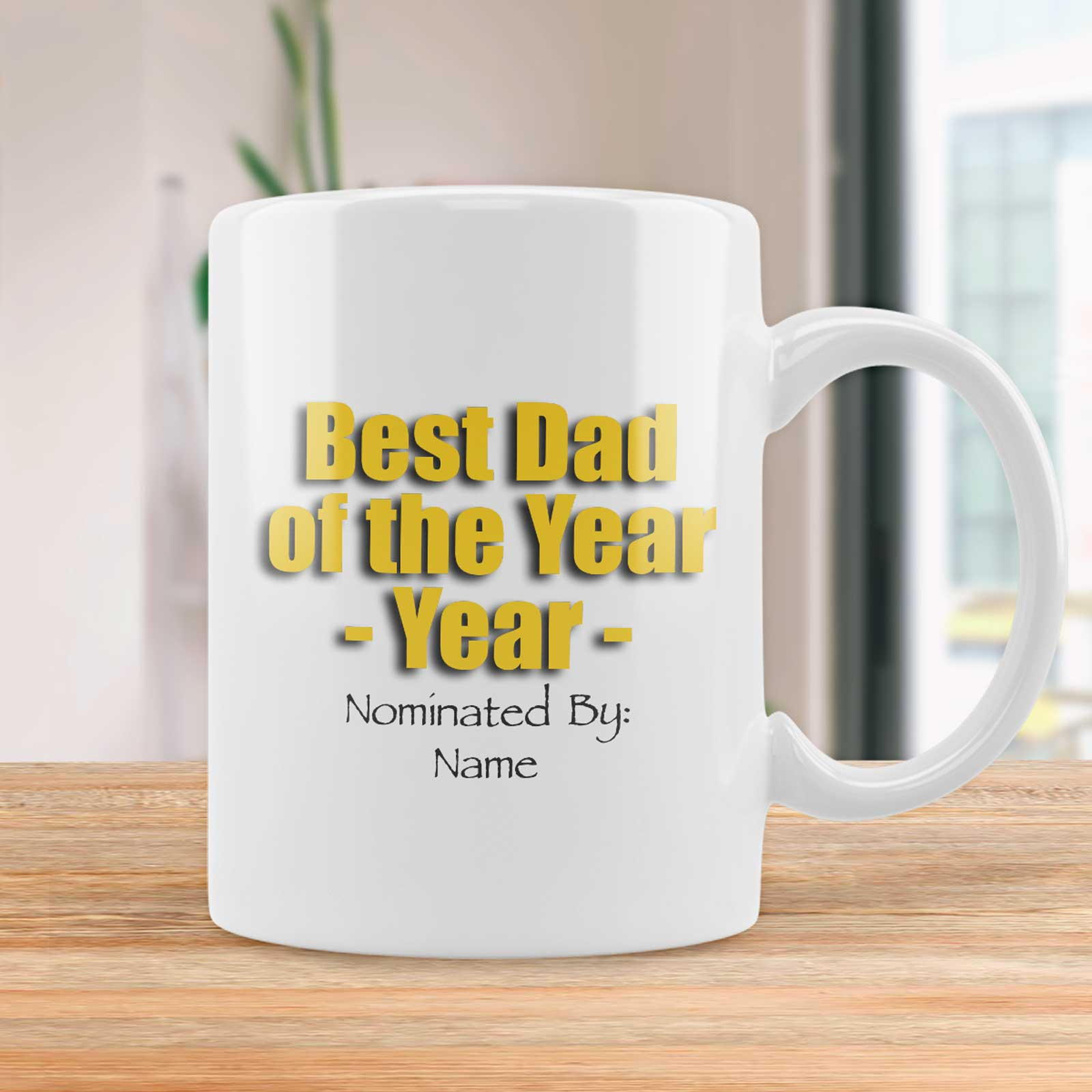 The birth date of the Dad's child is printed on the front along with your own chosen text on the other side of the mug (4 lines, each a maximum of 20 characters).