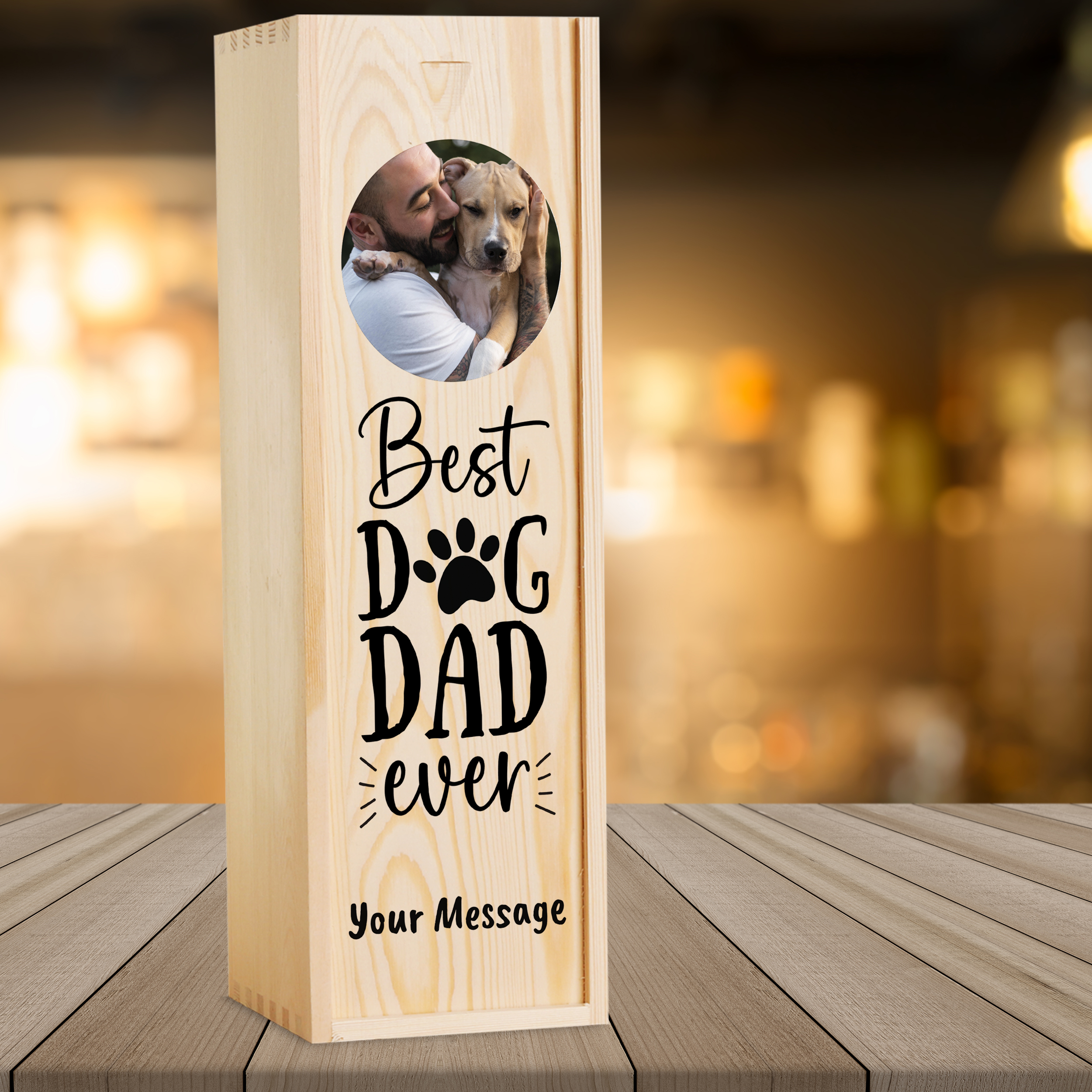 We print directly onto this wooden wine box via a high resolution UV print process. The wooden box makes a great keepsake after the contents have been enjoyed. The outer dimensions of this Single Bottle box are approximately 35cm x 15cm x 10cm.