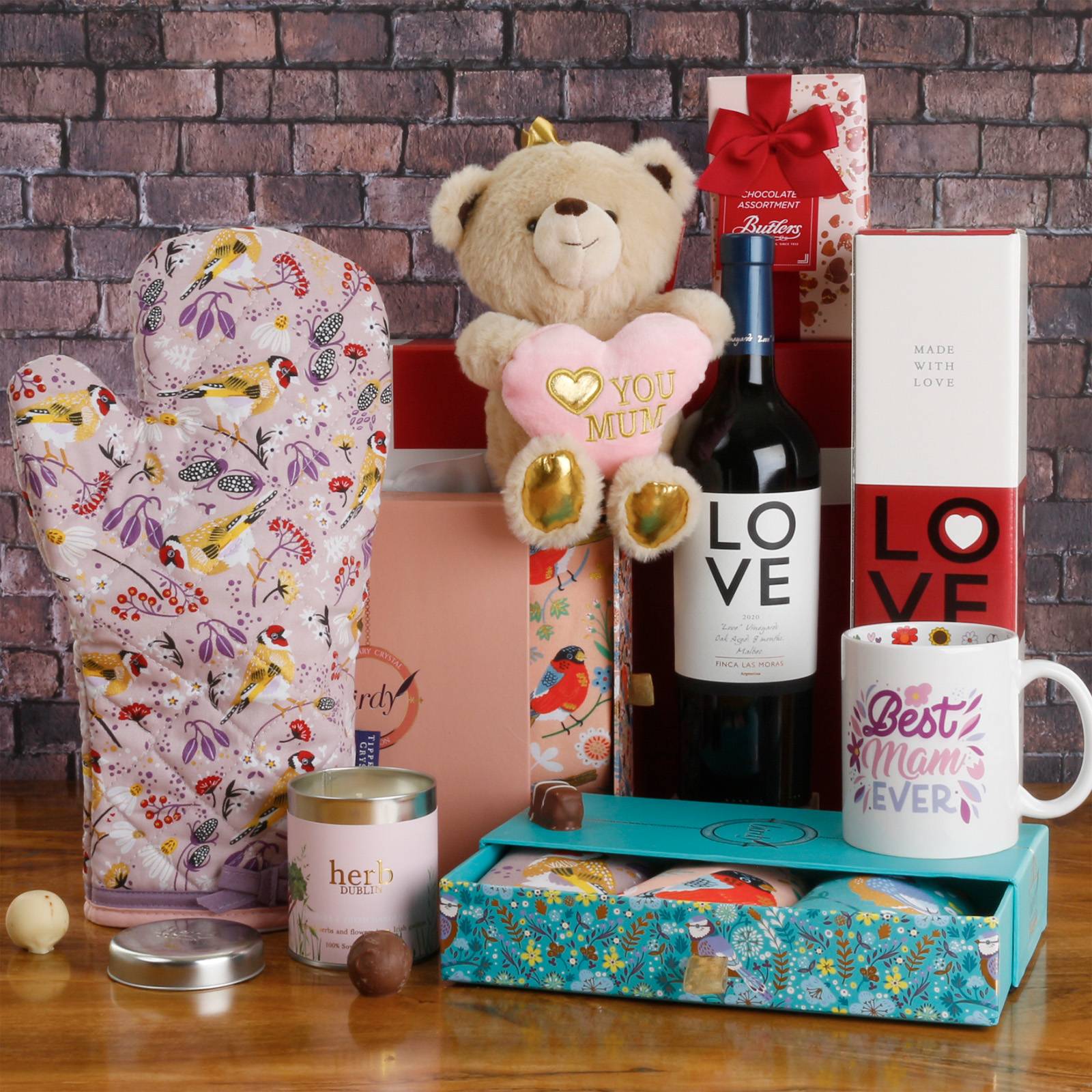 We have selected their top-sellers and coupled with some wonderful wine & food items, also incuded a Herb Dublin pretty candle.