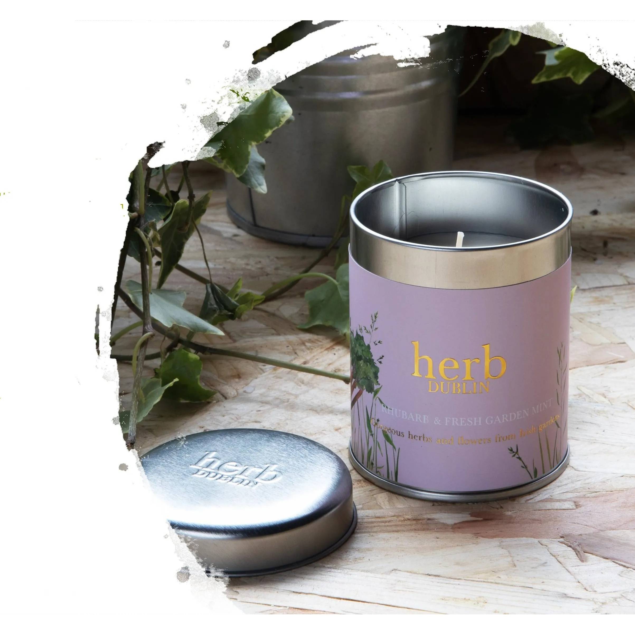 • Herb Dublin Rhubarb & Fresh Garden Mint Candle in a Tin