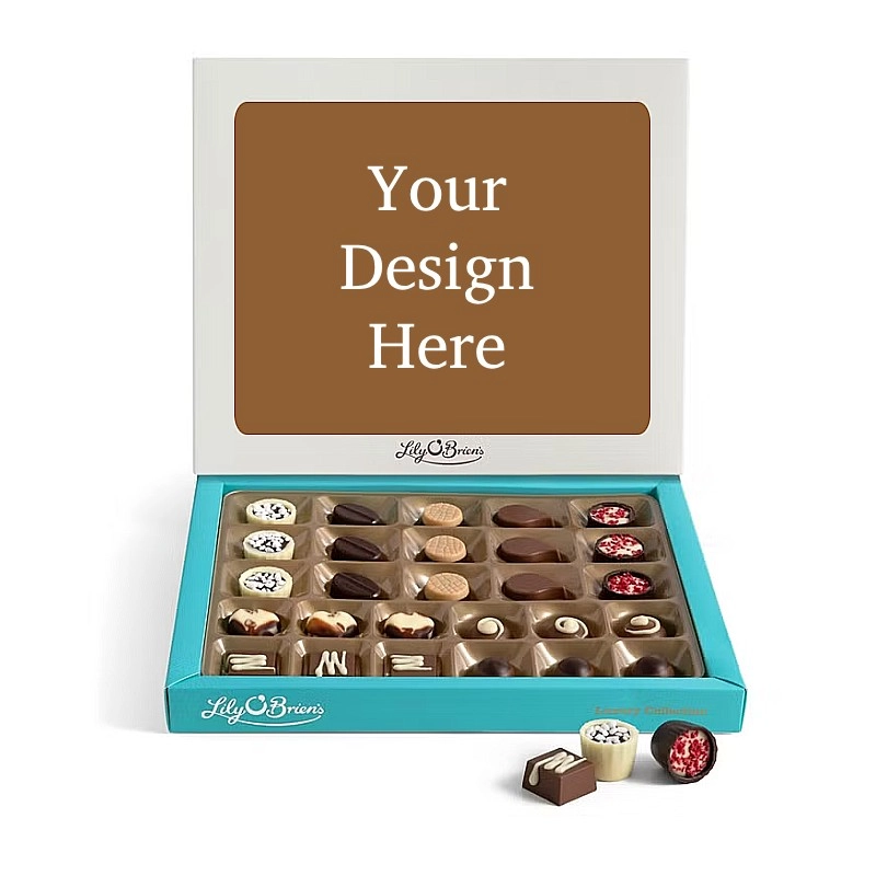 This Personalised Chocolate Box is filled with the Lily O'Brien's Luxury Chocolate collection. Approximate box dimensions: 290mm x 240mm x 40mm.
