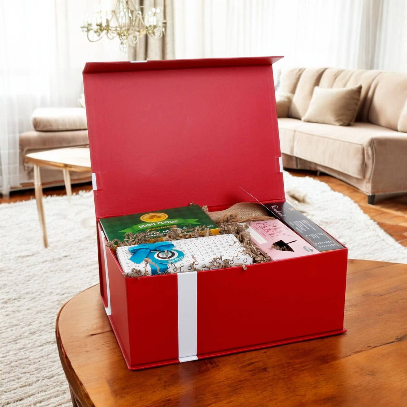 LUXURY GIFT BOXES AND HAMPER BASKETS: We use our signature high quality rigid luxury gift boxes for most of our hampers. This contains a satin bow and is manufactured exclusively to our custom specifications. They are not only attractive, but also provide a very practical means of storage, be it in the kitchen, living room, bathroom, bedroom or playroom.