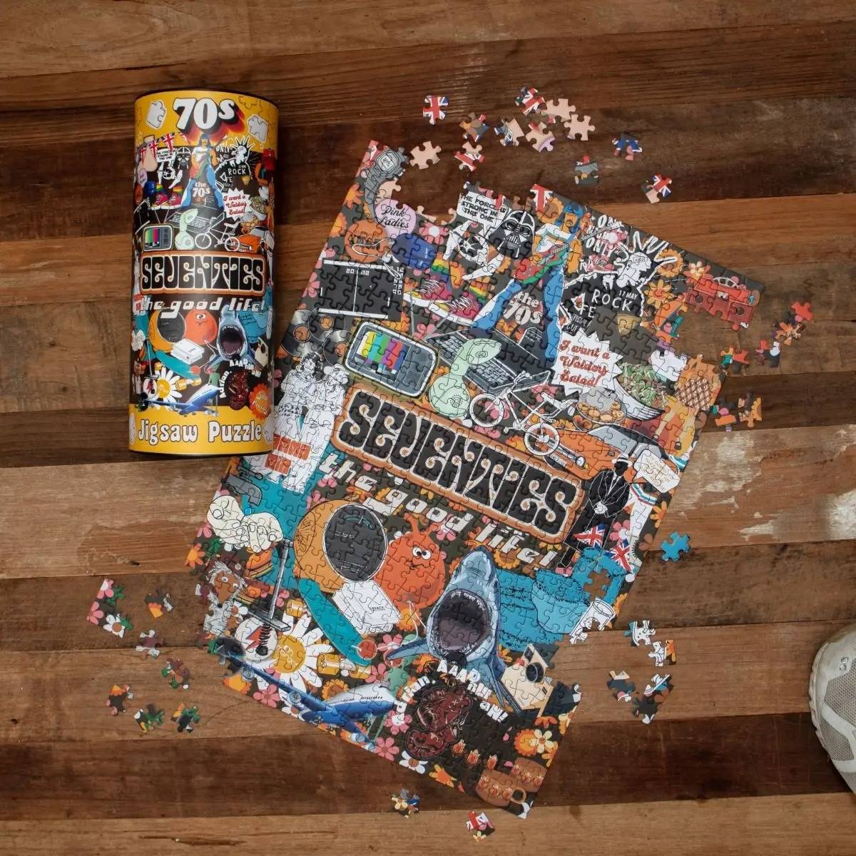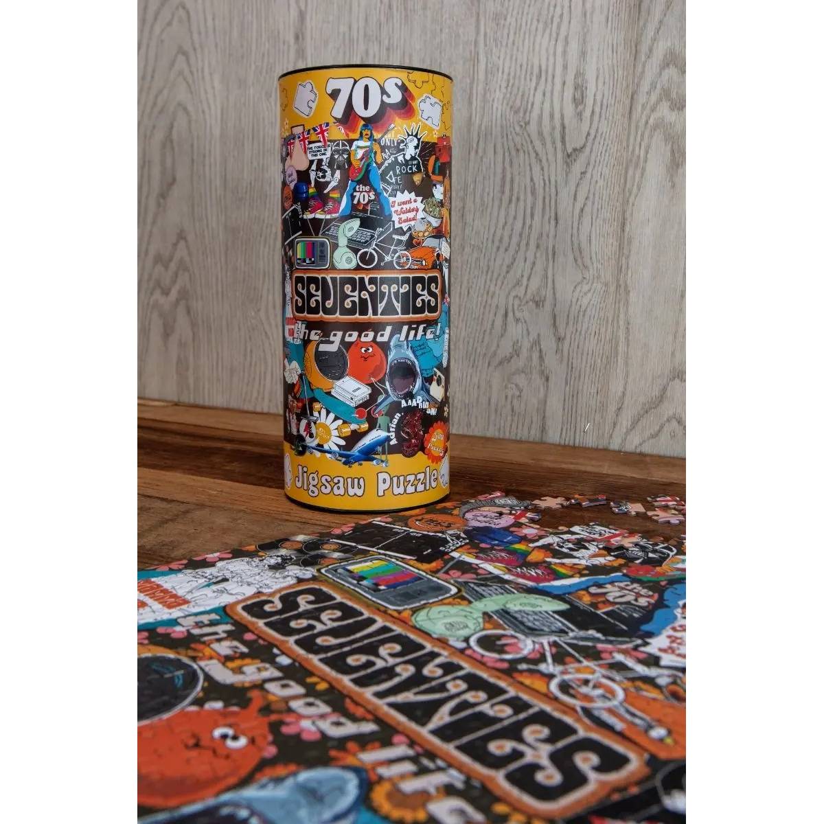 GIFTABLE PUZZLE – With bright, fun tube-shaped packaging, this 500 piece jigsaw is sure to put a smile on someone’s face, no matter if they just love the 1970’s or actually lived through it!