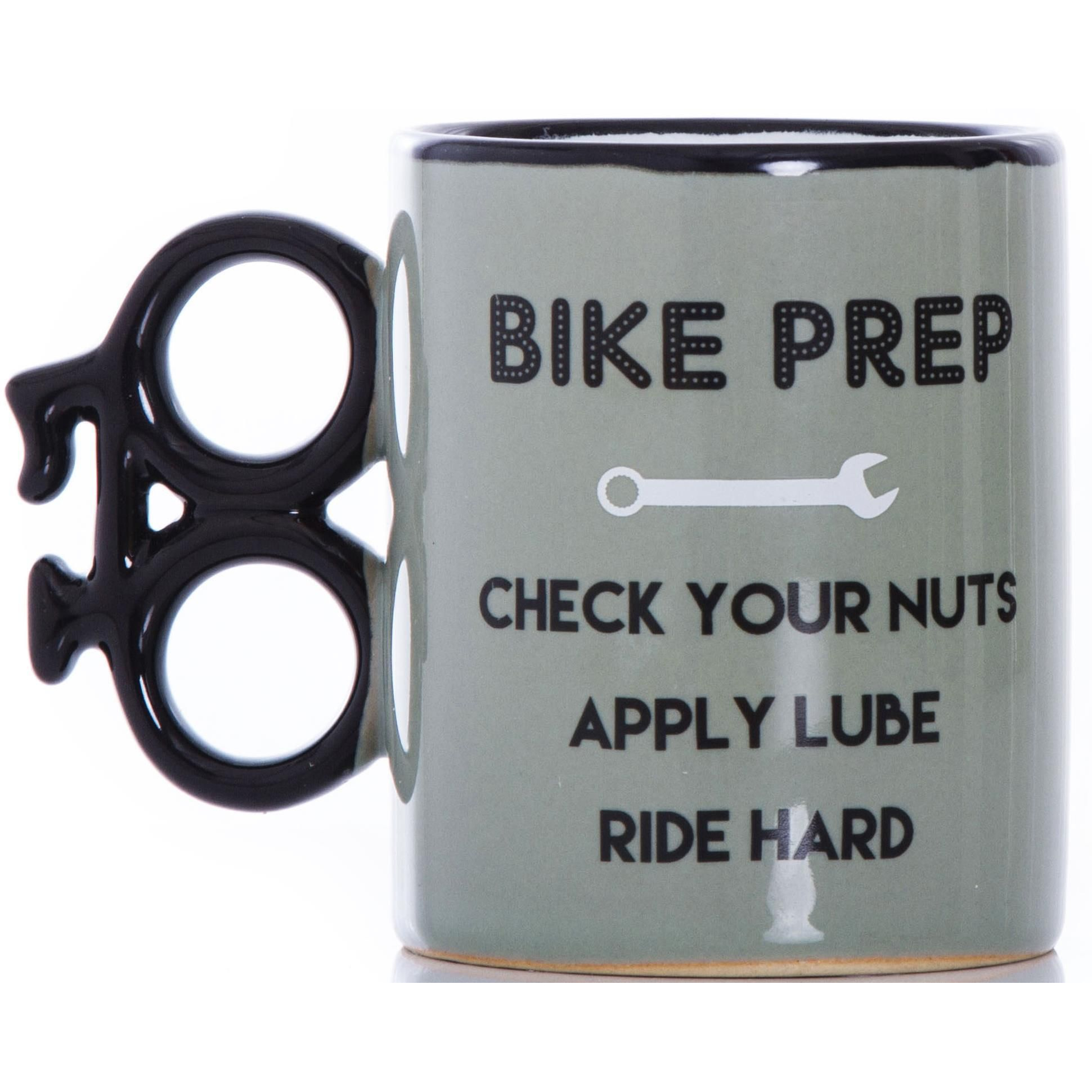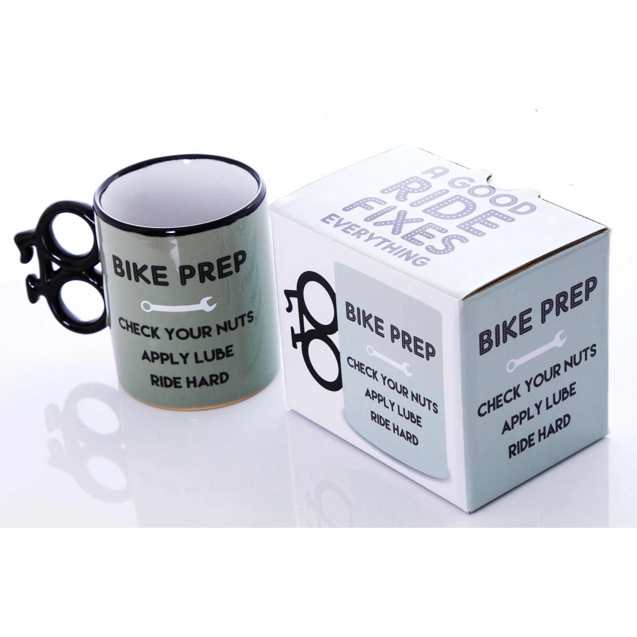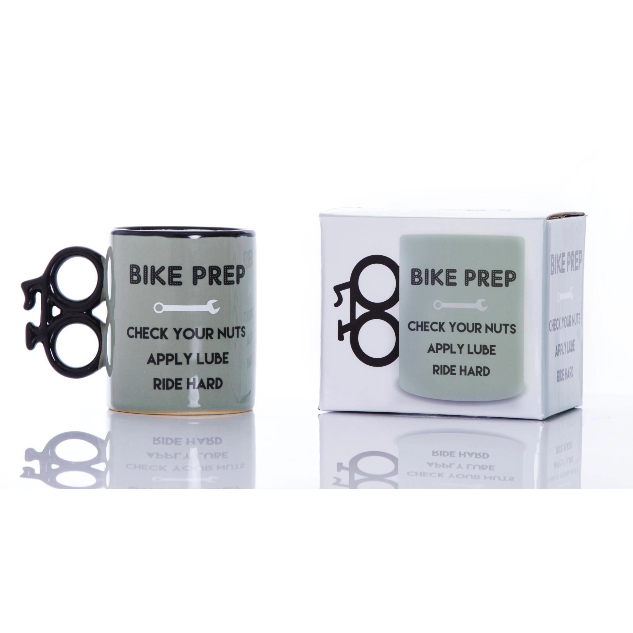Get off your bike and have a brew! Hook your fingers through the bike shaped handle and swig your tea (or coffee, or hot chocolate) whilst proudly displaying the slogan 'BIKE PREP'.