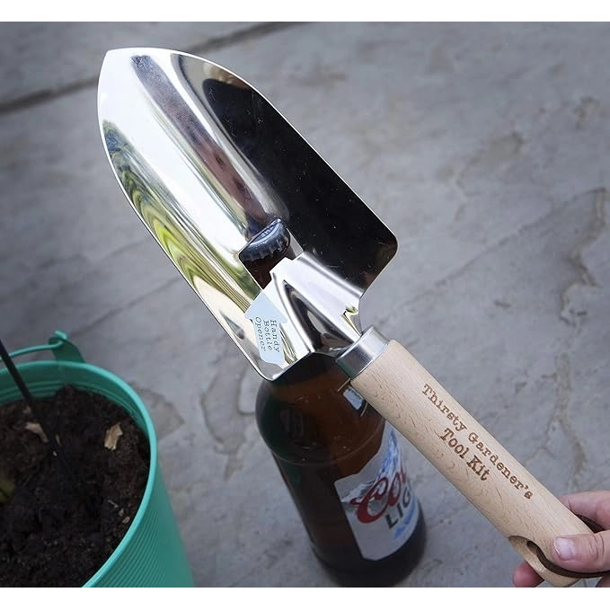 A handy beer bottle opener is incorporated into this sturdy, novelty garden tool, great to place in a homely kitchen or garden shed.