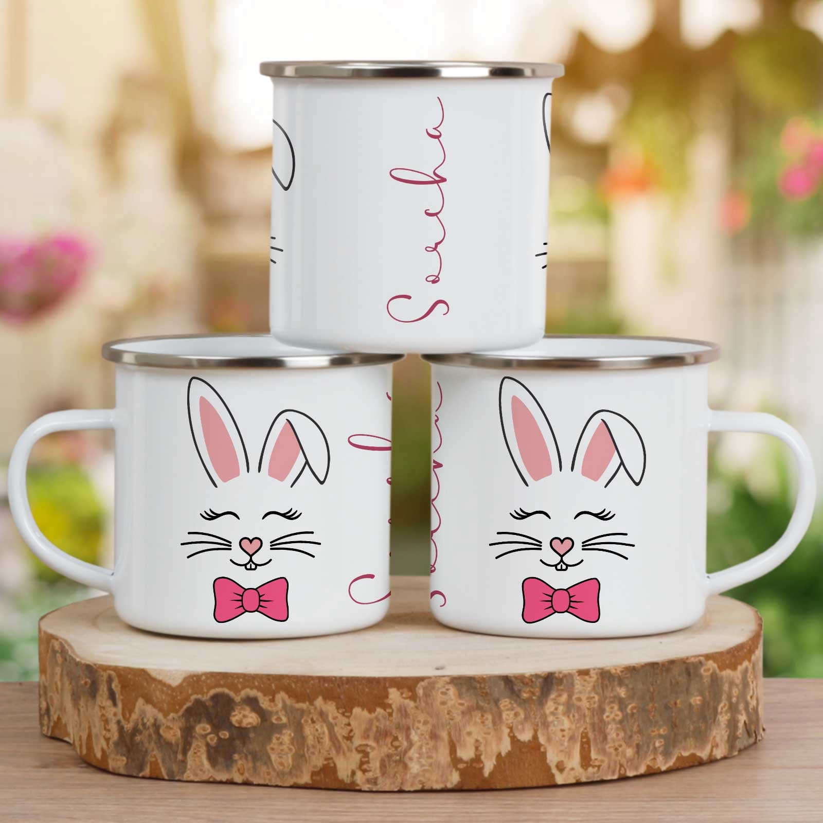 This personalised enamel mug is an ideal gift for birthdays, baby showers, christenings, Easter, or simply to brighten someone's day. Its timeless bunny design and practical style make it a treasured keepsake that brings joy long after the last sip.
